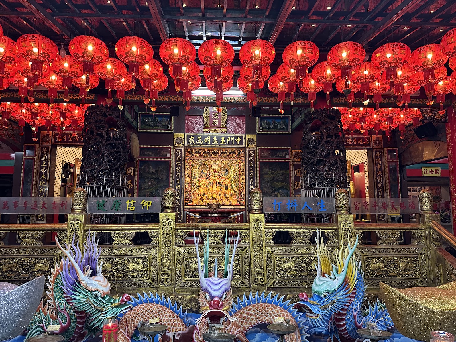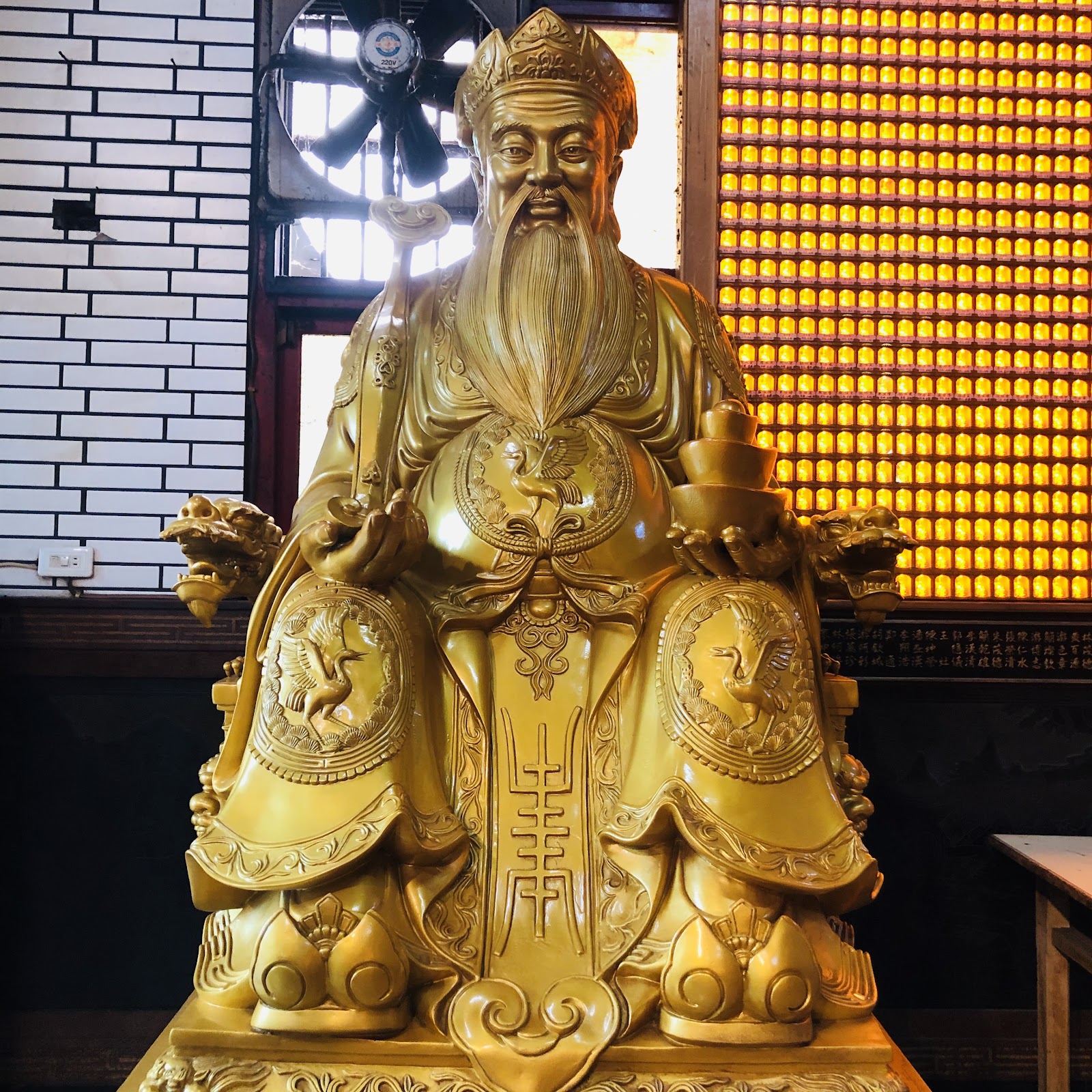 知名廟宇,香火鼎盛,許多人來參拜,有多項吉祥招財象徵的吉祥物