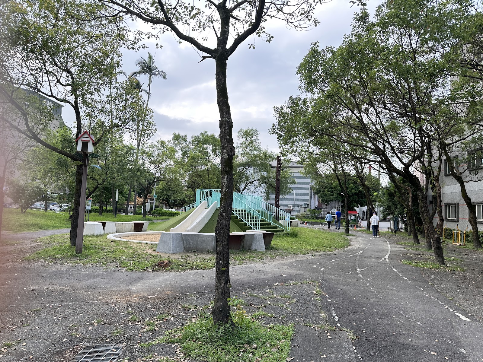 園區雖小, 有兒童遊戲區、 簡易運動器材區、步道、 乾淨創意的衛生間、避雨遮陽廣場,適合中老年、 兒童、輪椅族來此運動歇腳