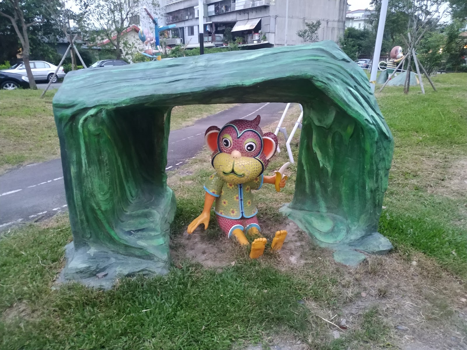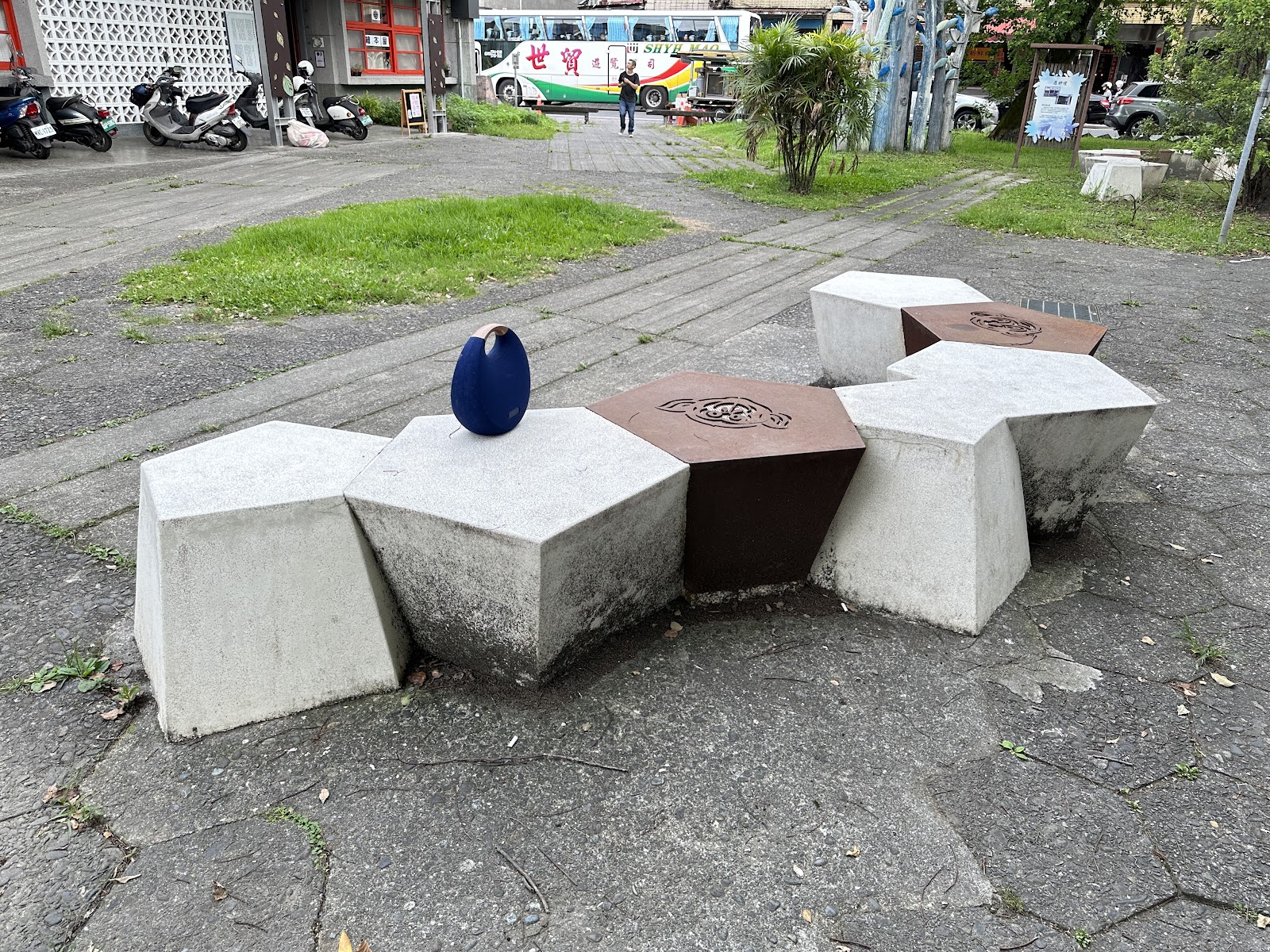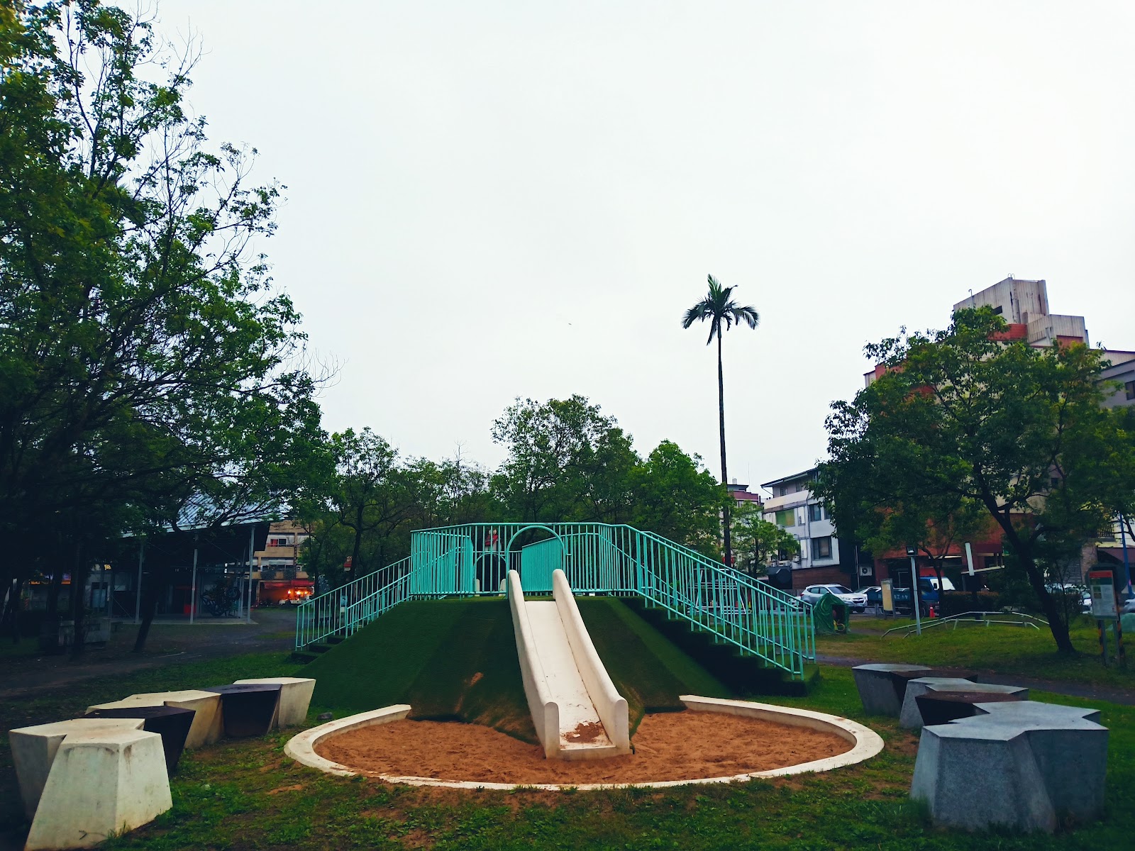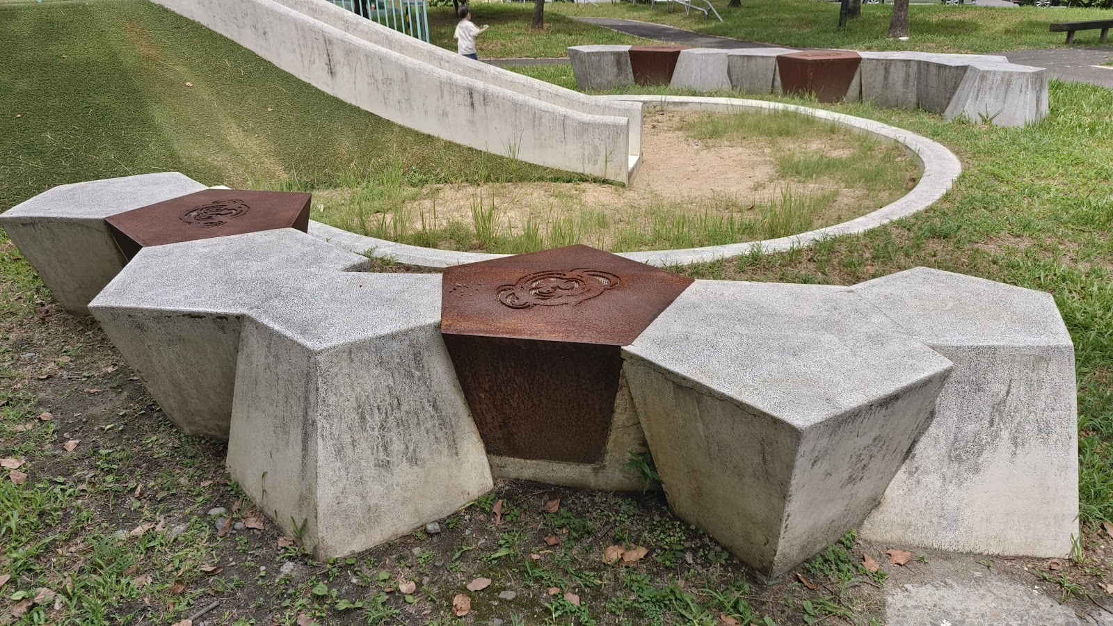 公共設施裡有兒童遊戲設置,也有遮涼避陽的小廣場可以讓遊客或居民運動散步。