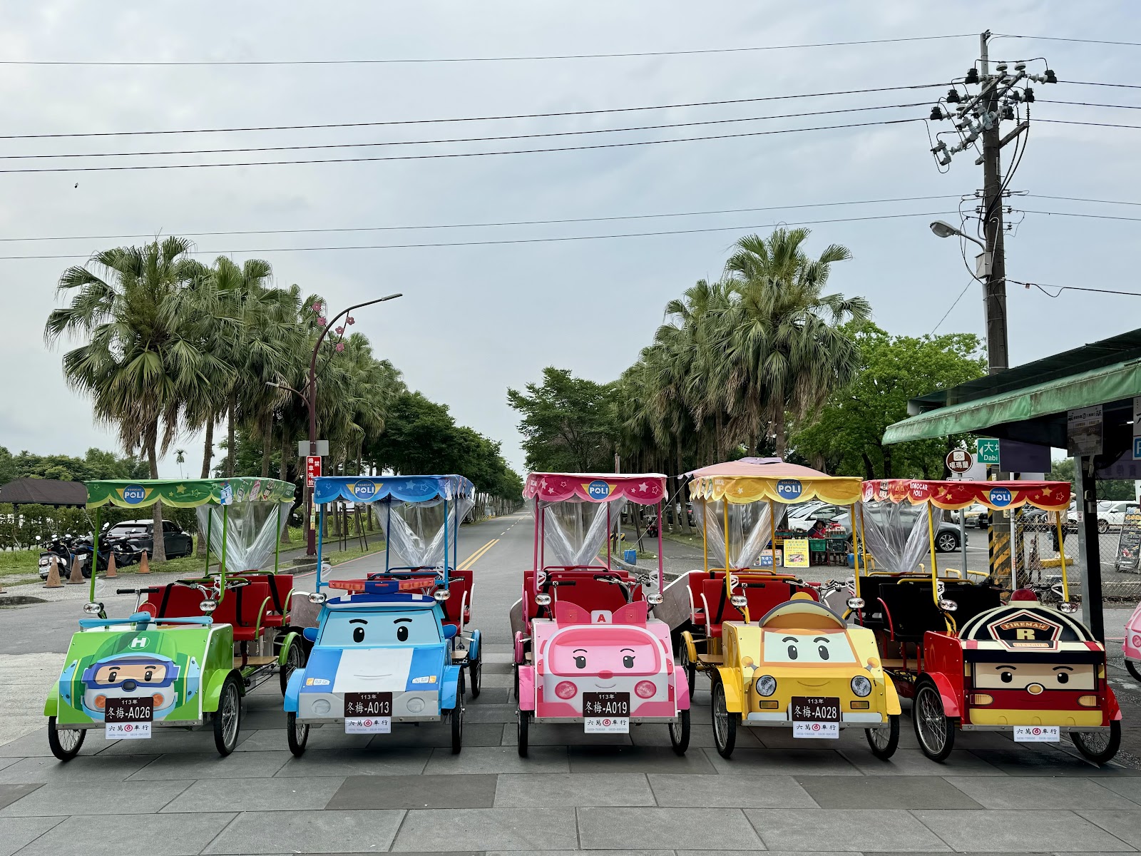 4人電動車,給我們放行擠5人(2大3小)。