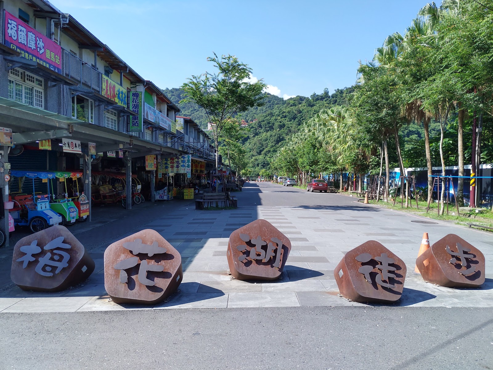 跑跑卡丁車後來這裡租車老闆給了優惠,車子都是嶄新的,梅花湖一圈實在太短了,下次應該徒步環湖。