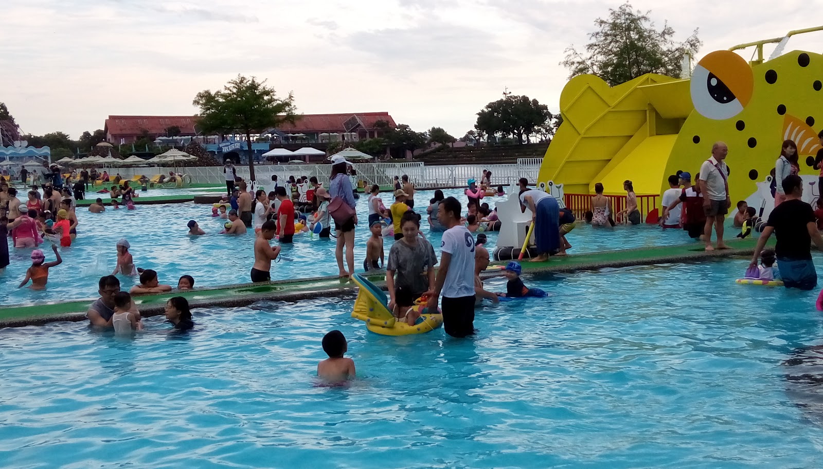 就是水質……玩回來,一起去的好幾位大人小孩都皮膚大過敏……上午水還是清澈的,越晚水越濁越泛白……大人池更髒。務必要防曬,真心曬!
