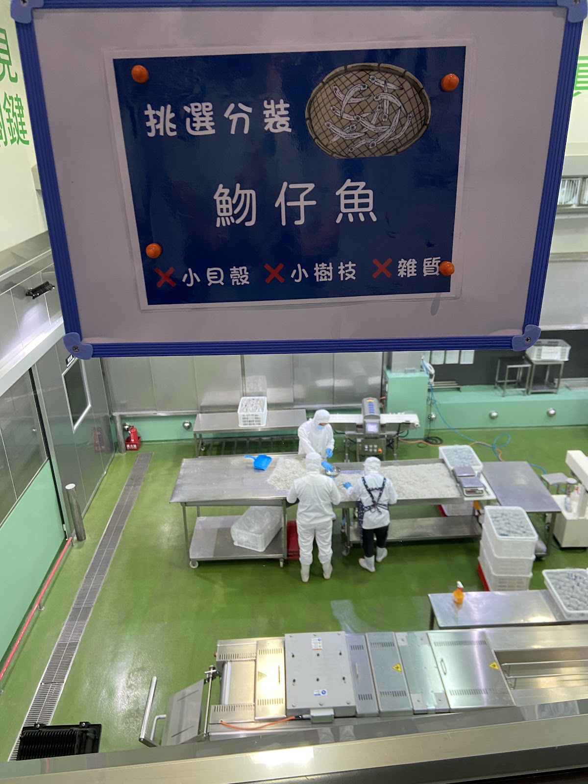 以漫畫方式呈現家族史,參觀通道一側是透明玻璃窗(為確保吻仔魚品質,由人工再次檢查是否還有雜質),並有免費試吃區。環靜干淨明亮,很適合半人日遊。