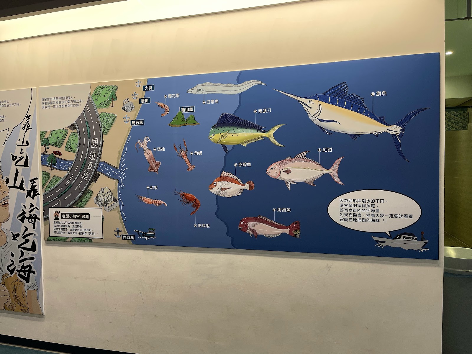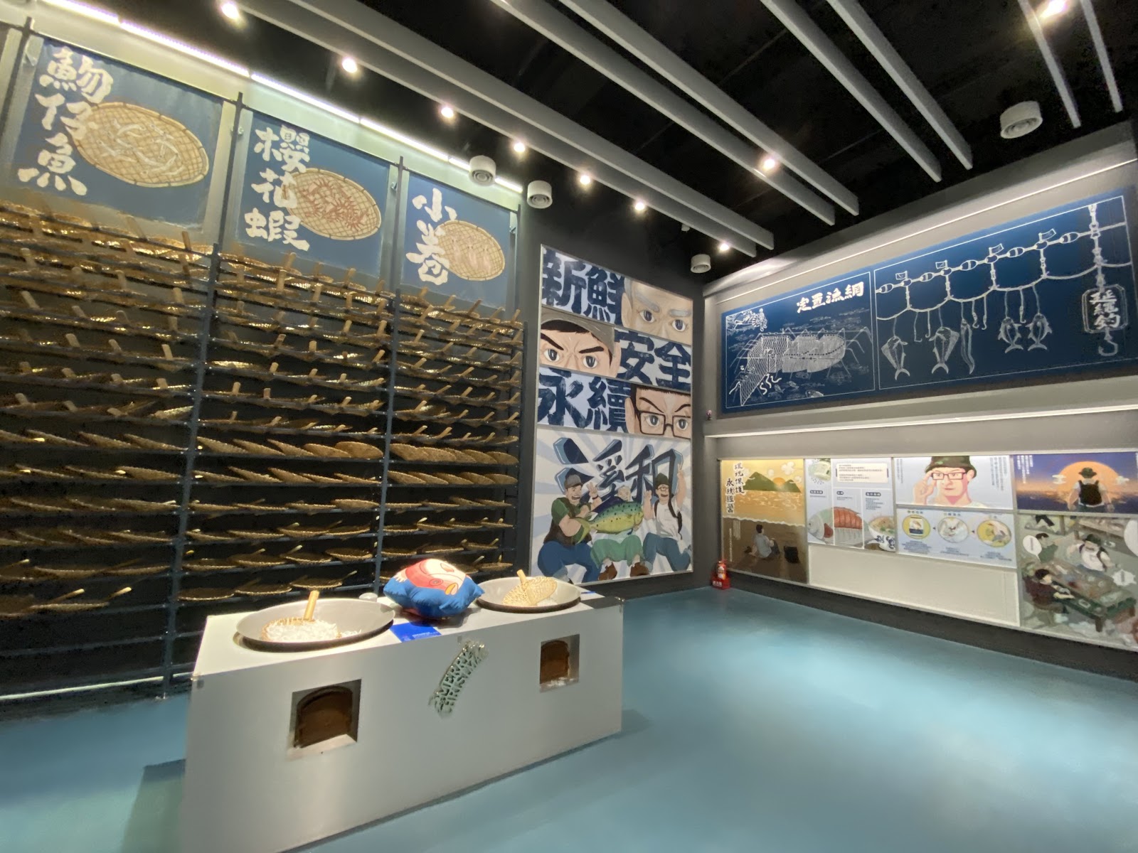 導覽牆使用漫畫呈現的方式很活潑有趣,導覽人員也很熱心的解說(獲得魩仔魚的一些小知識),覺得能尊重海洋生態的水產業者真的很不簡單,真的謝謝他們的付出。