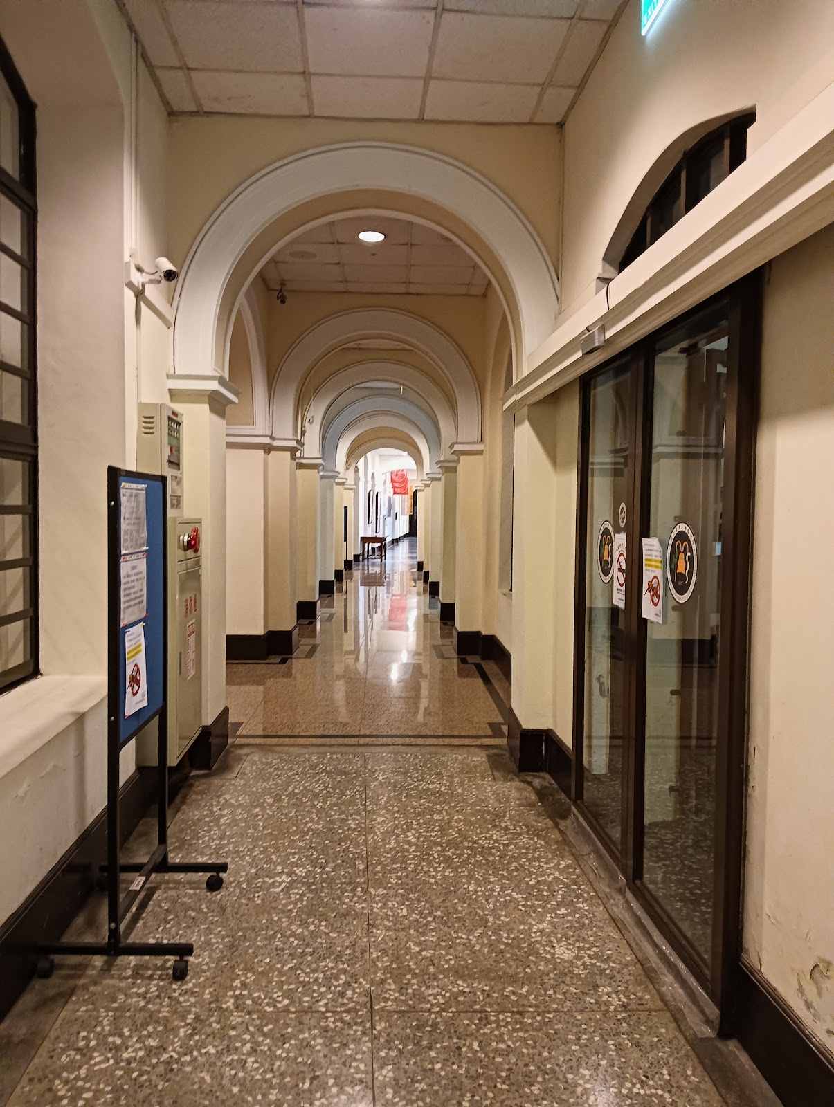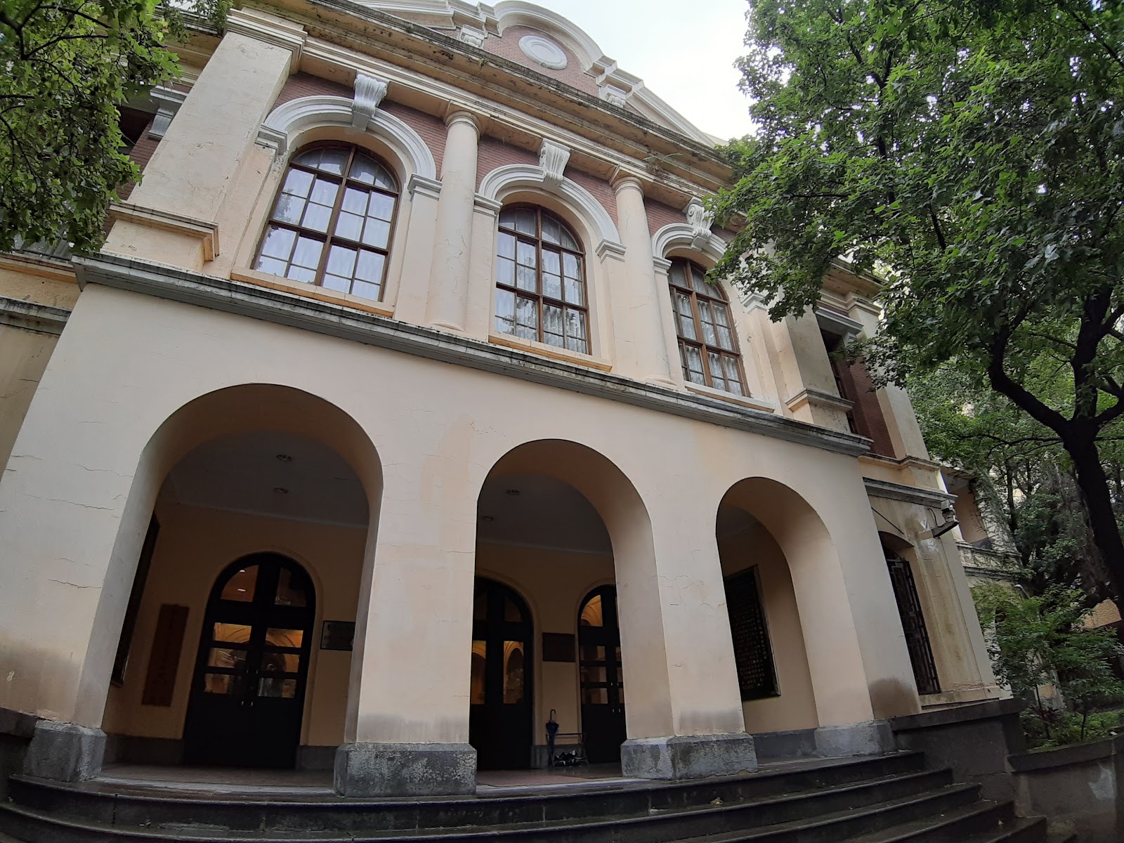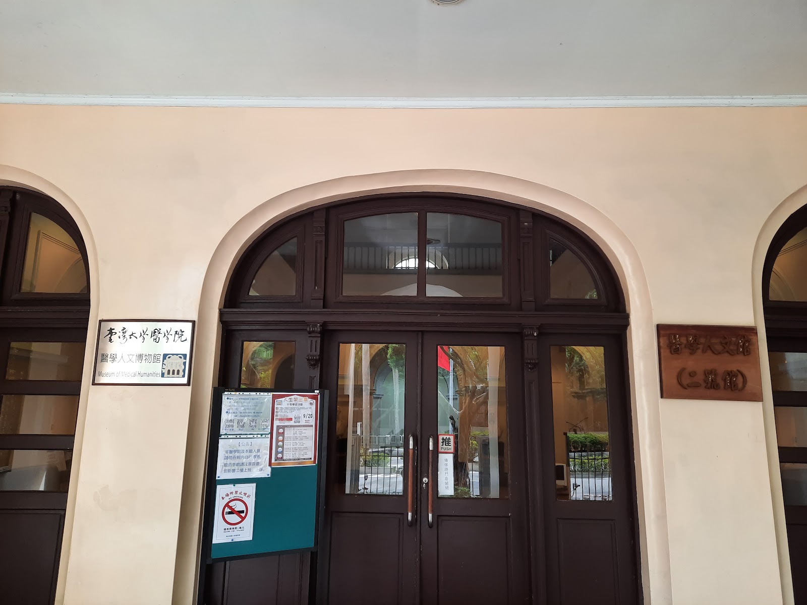 台大醫院人文博物館位於仁愛路一段鄰中山南路,曾是日治時期台灣總督府醫學部校舍,建築始於1907年,曾發生過火災,幾經修復保存完善,在2008年成立博物館,是台北市市定古蹟,穿過花園入內大廳採挑高兩層,長廊多拱形古樸又高雅,九個展示間多為醫學相關學史文物及醫學發展史,展間有一幅昭和三年手繪教學人體圖保存良好。博物館目前不定期舉辦醫學講座推廣醫學人文教育,參觀完推開大門再次看到右側牆上醫生誓詞,感佩滿滿。室外前後方庭園種植多株楓香樹花園名為景福園,範圍不大但很適合在花園近距離欣賞博物館建築外觀。