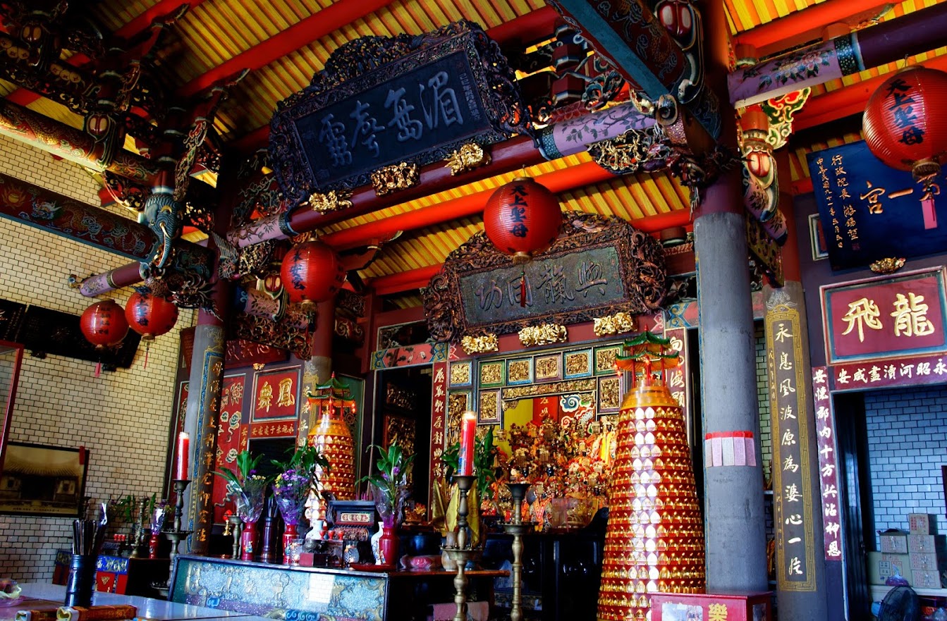 利澤簡老街上媽祖廟,舊寺廟雖不大,但氣氛莊嚴寜靜,廟內的木雕精美。