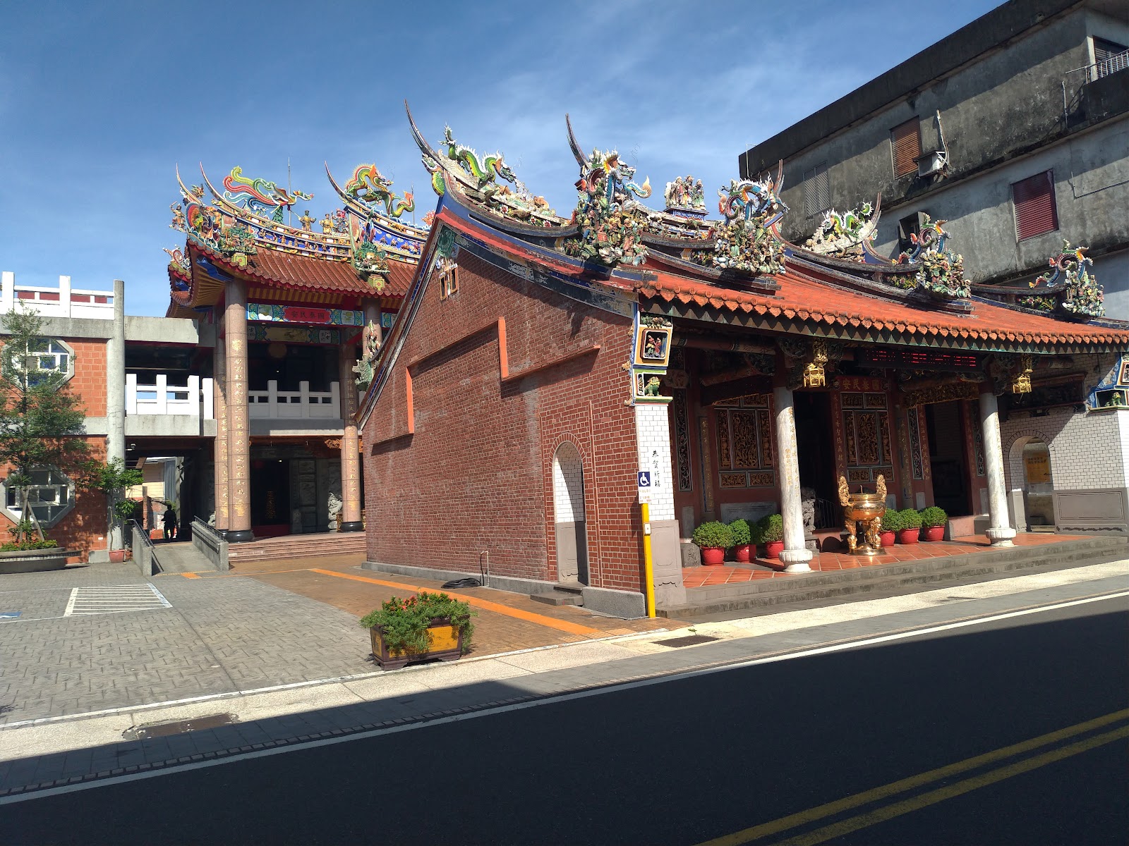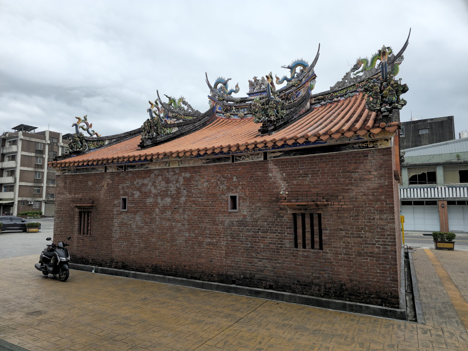 其屋面的泥水、瓦作及剪黏等,皆為老師傅以古法砌作。上至三川脊屋頂、三段中脊上翹燕尾、剪黏陶燒飾物,外牆清水紅磚、交趾陶獅頭、鳥踏,殿內左右牆面交趾陶的龍虎堵,四點金柱、石獅、石枕、石珠等皆為石雕。廟內各處壁堵、吊筒、斗拱、員光、鑿井等,無論是獅象龍鳳、雀替飛魚,些細緻生動。廟內還產出收藏的象鼻瓜筒、劉海戲金蟾等,皆是出自木雕大師師陳銀生的作品。