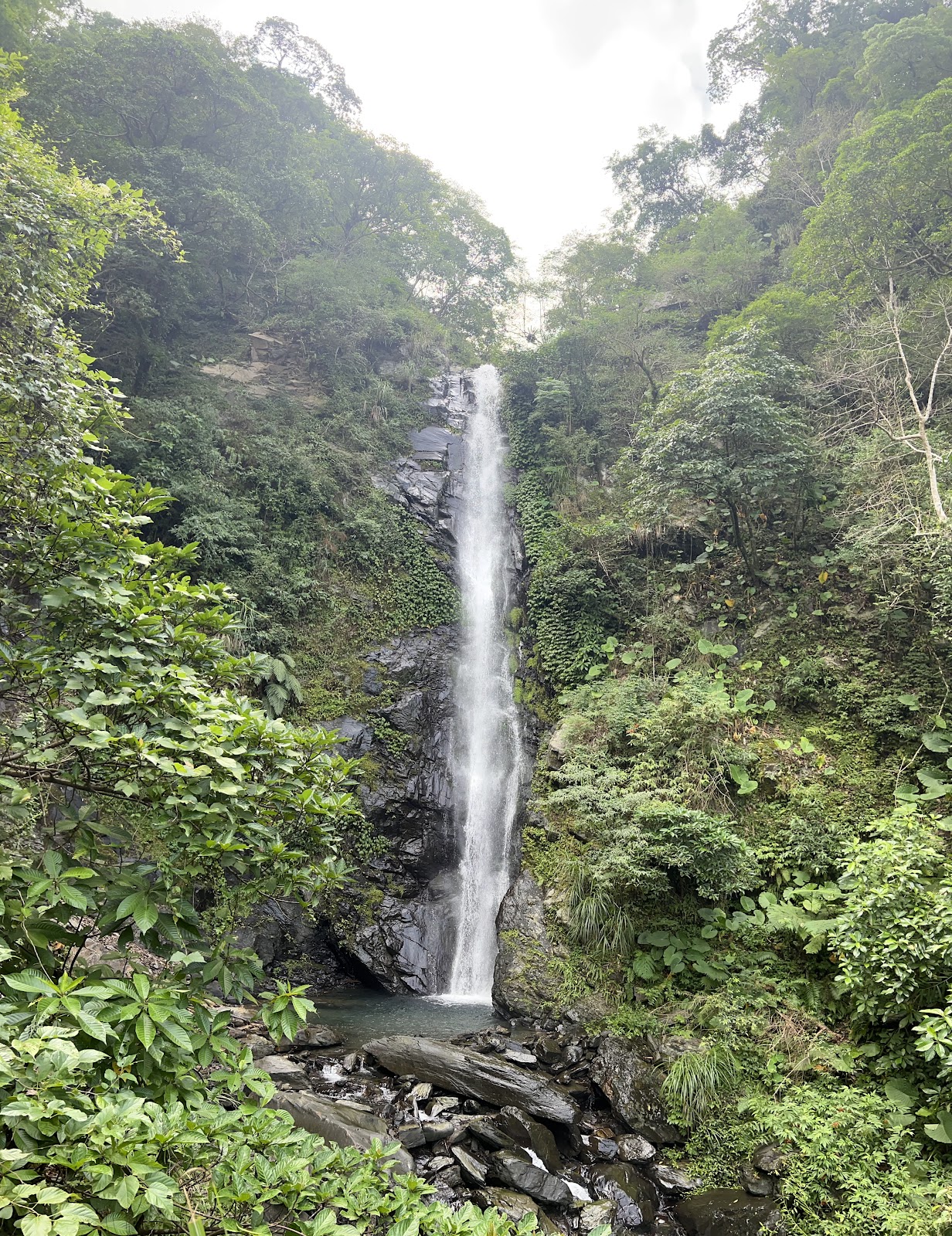 舊寮瀑步較高且較瘦長形、像個身材娉婷袅娜的少女、靜靜矗立在山中、等待人們來拜訪!