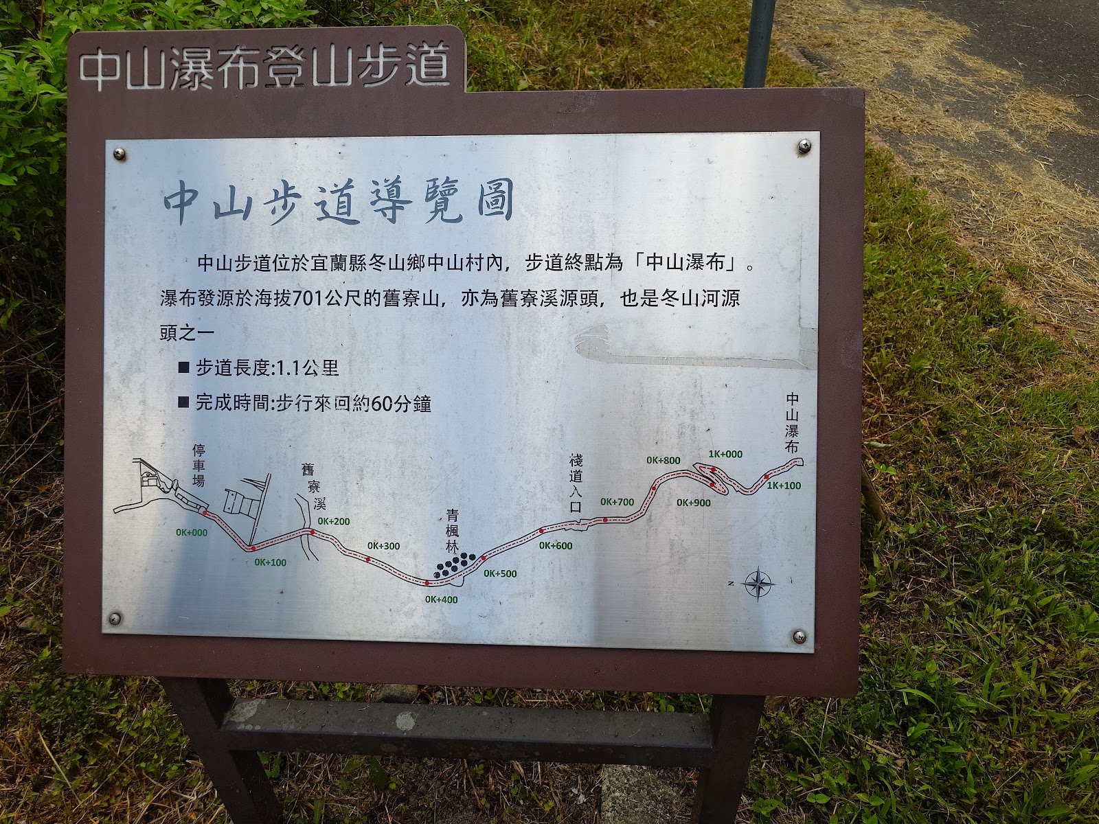 2.步道長約1160m,比新寮瀑布更好走,但也稍微陡一點,會稍微累一點。步道前600m全是柏油路,後面500m是木製階梯與碎石路交錯,每100m都有標示距離,整體步道規劃比較完善。