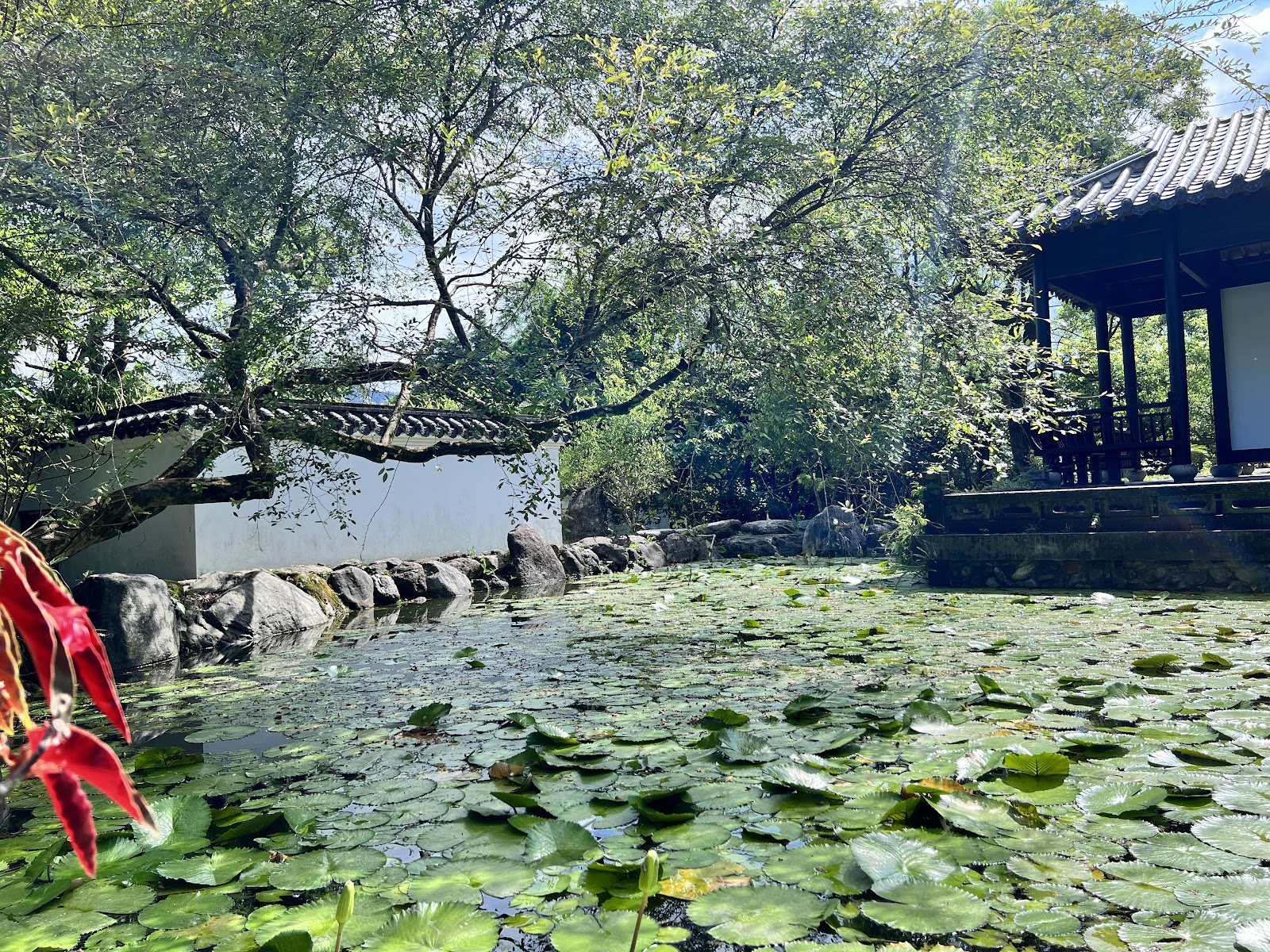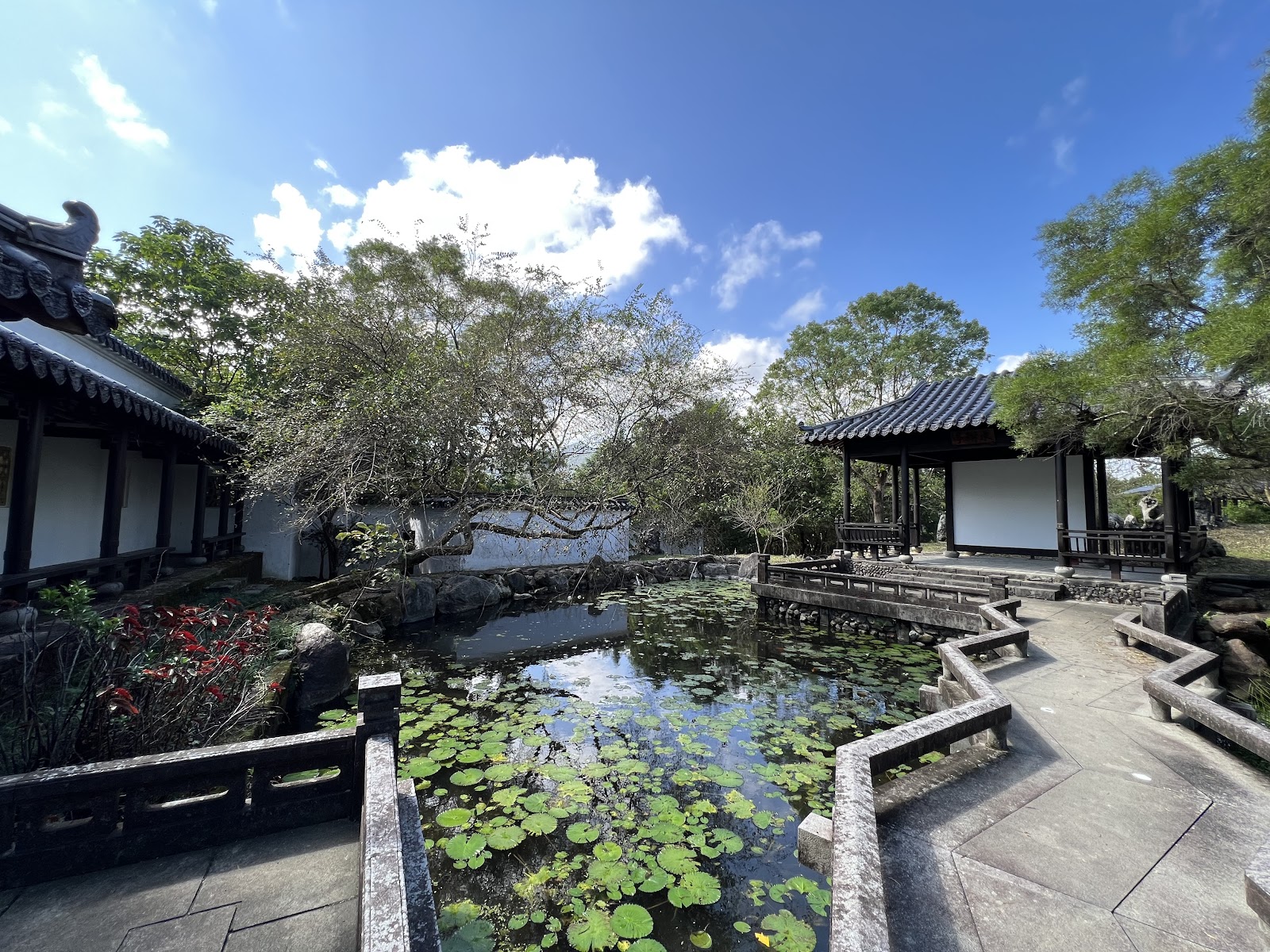 洛杉磯的杭亭頓圖書館內也有一座中式庭園,名為流芳園,規模自是數十倍大,簡直是一座園林博物館,「流芳園」一名,來自曹植《洛神賦》中的 “步蘅薄而流芳”一詞。它位在占地 207英畝的 “漢庭頓圖書館•博物館•植物園 The Huntington Library, Art Museum, and Botanical Gardens”內,是園區中 16 座主題花園之一。這讓我想起仁山植物園亦有異曲同工之妙,只是規模較小。