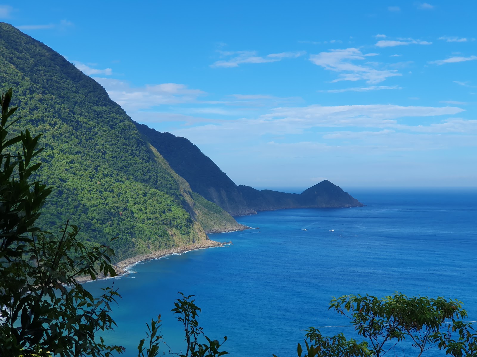 我來到宜蘭縣南澳鄉朝陽步道,沿途會經過濃密的樹林,高聳的樹木遮蔽了大部分的陽光,讓步道內充滿涼爽的綠意,步道終點是制高點,當你登上山頂時,眼前的景象會豁然開朗。你可以俯瞰整個南澳灣,湛藍的太平洋與翠綠的山脈交織成一幅壯麗的畫卷。遠方海面上船隻緩緩前行,天空的雲朵隨著海風飄動,這種開闊感讓人心曠神怡