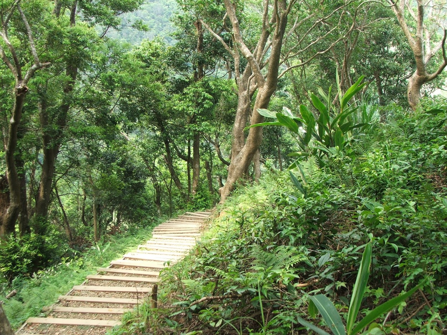 一進入登山口,前面500公尺都是「階梯式」的步道,兩側都是滿滿的樟樹科的植物,所以在林間都可以聞到濃郁的天然香味,也有很多自然的植被
