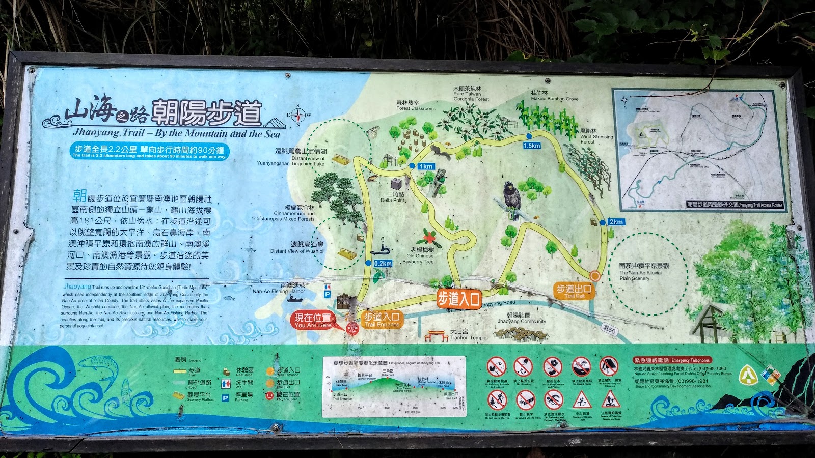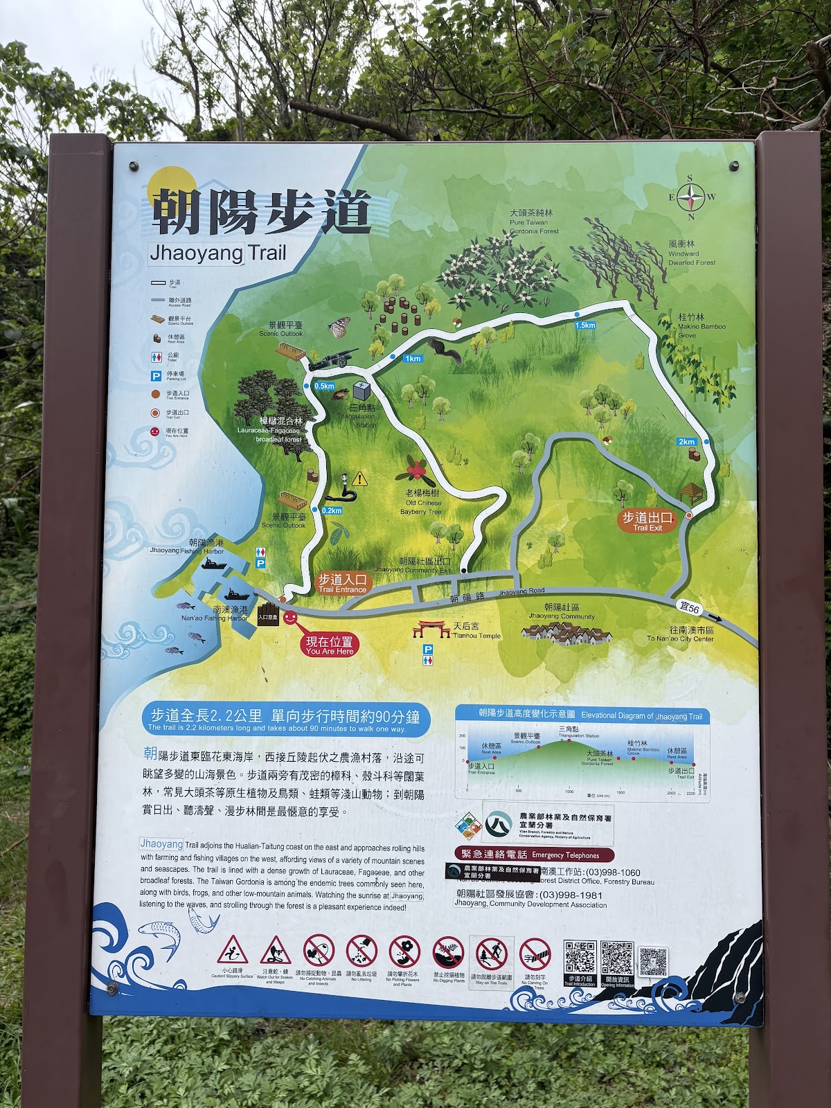 一個整理得很好的步道;重點是進入口要選擇朝陽社區當入口(緩昇),以南澳漁港的入口當出口(急降),走起來會舒服很多。千萬不要照地圖上所示,由南澳漁港的入口進入,這一段太陡峭爬升,你會走到懷疑人生,切切謹記。