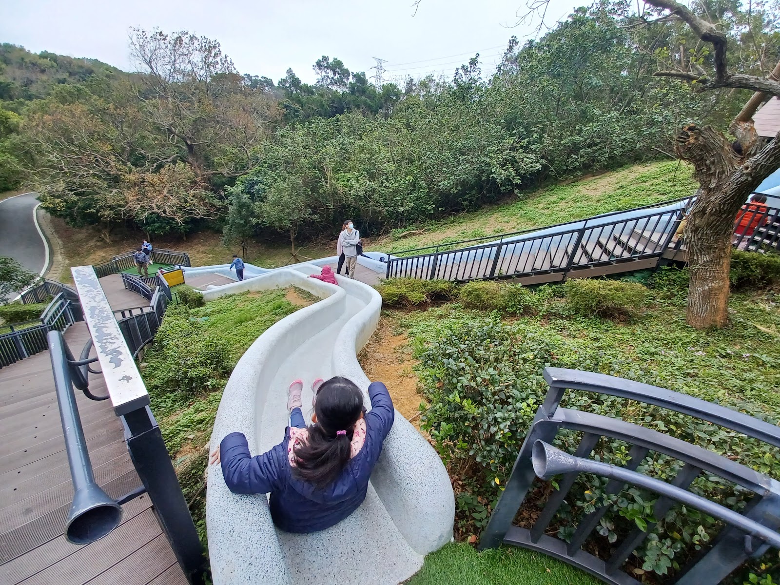 剛好是超冷的寒流日,冷風大吹,小孩玩溜滑梯🛝很刺激,溜滑梯分為110cm和140以上身高限制,不符合身高標準的真的很危險,建議大人要警慎評估。園區內有飲水設施很方便運動的飲水需求,記得要帶環保杯方便飲用!