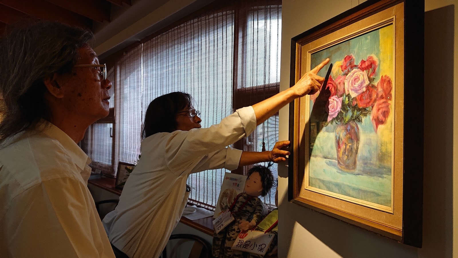 展場空間不大,逛一圈約十幾分鐘。展出的畫作,畫框有些老舊破損(可見不收門票要維持一個展覽空間真的很困難)。