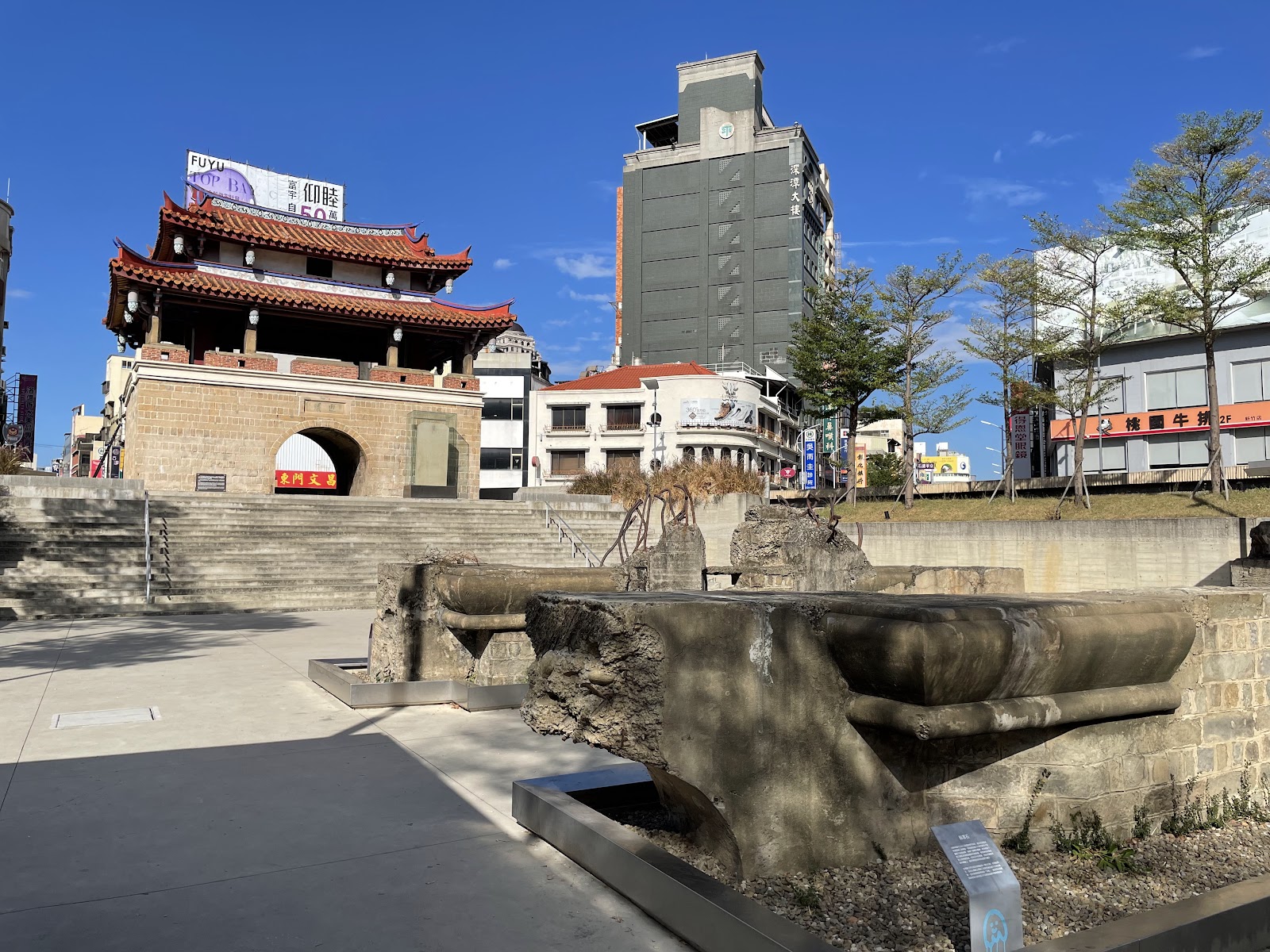 東門城護城河親水公園以前為防禦,而設現在變成為親水公園,假日的時候到處都是親子戲水走路散步,所以滿悠閒的地方到處都是綠意盎然,樹蔭非常多所以不用擔心大太陽