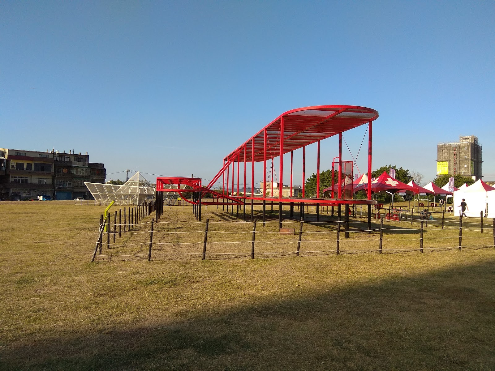 這裡有一個溜滑梯造型相當特殊,寬度很大適合讓很多小孩一起溜,另外付近還有奇特的裝置藝術。