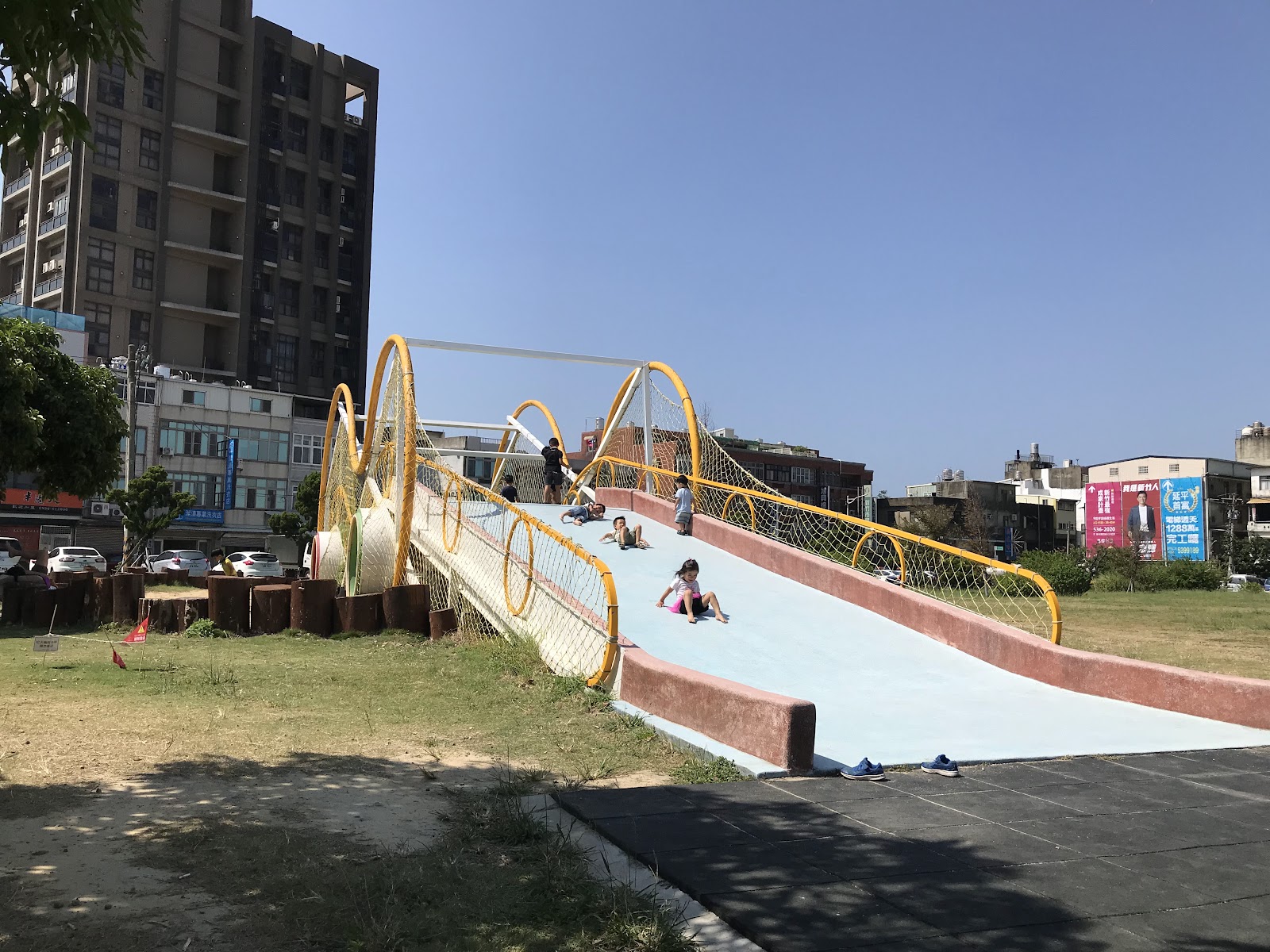 簡單但有趣的攀爬設施,小迷宮和盪鞦韆。旁邊有一整排停車位相當方便,100公尺外還有7-11。