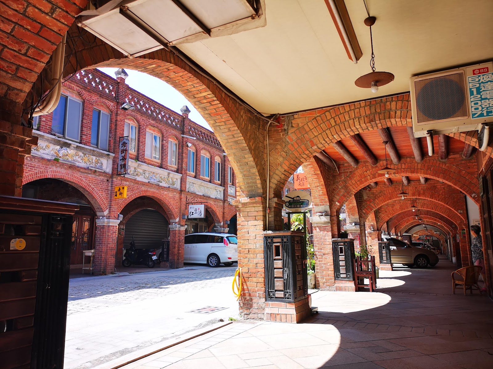 湖口老街最具辨識度的,正是街道兩側那一整排以紅磚構成的拱廊街屋。即使只是牽著愛車Bianchi緩步前行,也能清楚感受到這些建築自清末形成街市輪廓、並在日治時期逐漸定型後所累積而成的成熟美感。紅磚牆面、拱廊尺度與屋頂上簡潔的裝飾立面,至今仍保存得相當完整,在氛圍與建築深度上,絲毫不遜於三峽、大溪或鶯歌等更為人熟知的老街聚落。