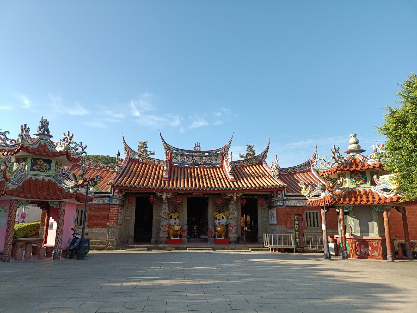 🛕湖口老街上的三元宮,是當地信仰與文化的重要中心,也是新竹縣的縣定古蹟。廟宇最早建於日治大正年間,歷經多次修整,如今依舊保留著典型客家廟宇格局——五開間、二殿二廊,中庭設有天井,廟前還有戲台與金爐。走進廟裡,可以看到木構與磚柱結合的結構,以及屋脊上的剪黏、彩繪、龍虎堵等工藝,細緻莊嚴,很能感受到傳統與時代融合的特色。
