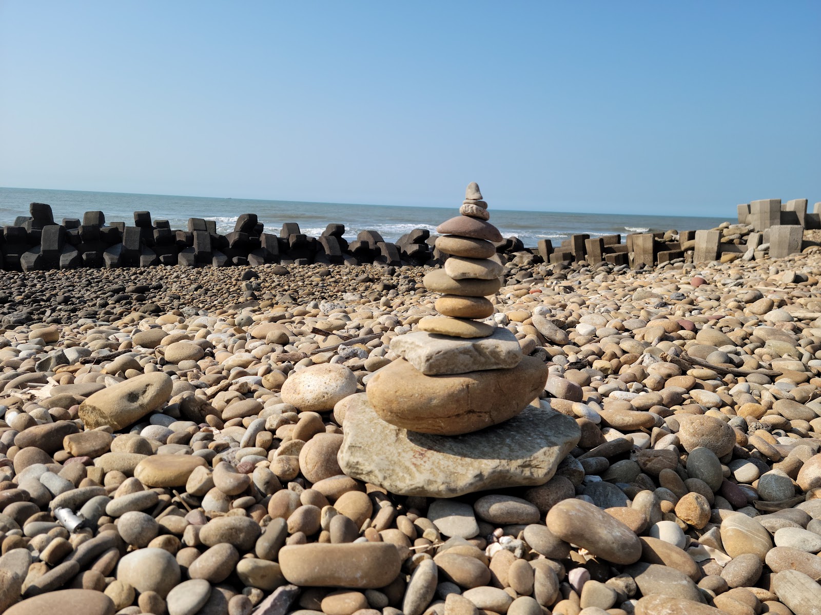 早上太陽不大還有海風吹拂,曬起來很舒服。沙灘很開闊,讓人心情跟著放鬆。岸邊有很多小螃蟹忙著覓食。