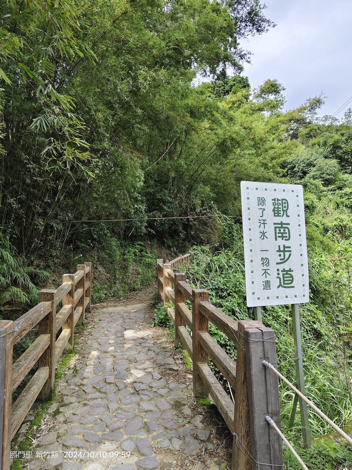 觀南步道,位於新埔與湖口交界,也稱觀南古道,因步道高點能觀賞南園建築而得名,為早期箭竹窩往來九芎湖的農路