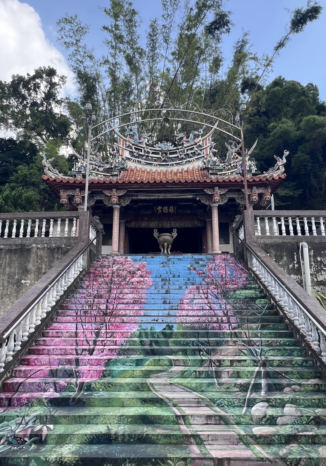 鄉間小路走走 廟梯有彩繪櫻花好看好拍