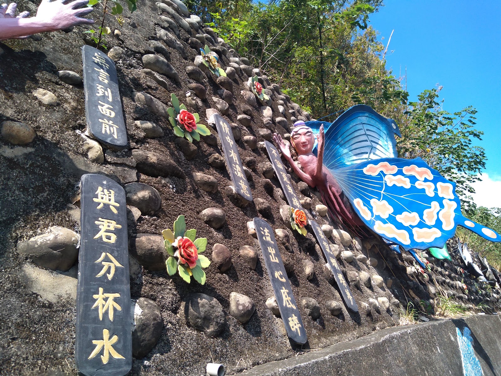 基本上這附近相當荒涼,來往的人車並不多,到這裡若是開車來可以停車在該路段左側墓園內,但要小心對向來車轉入。你當然也可以選擇直接停在有蝴蝶雕塑路段的右側路邊,但在一個彎道處,我不選擇冒險。