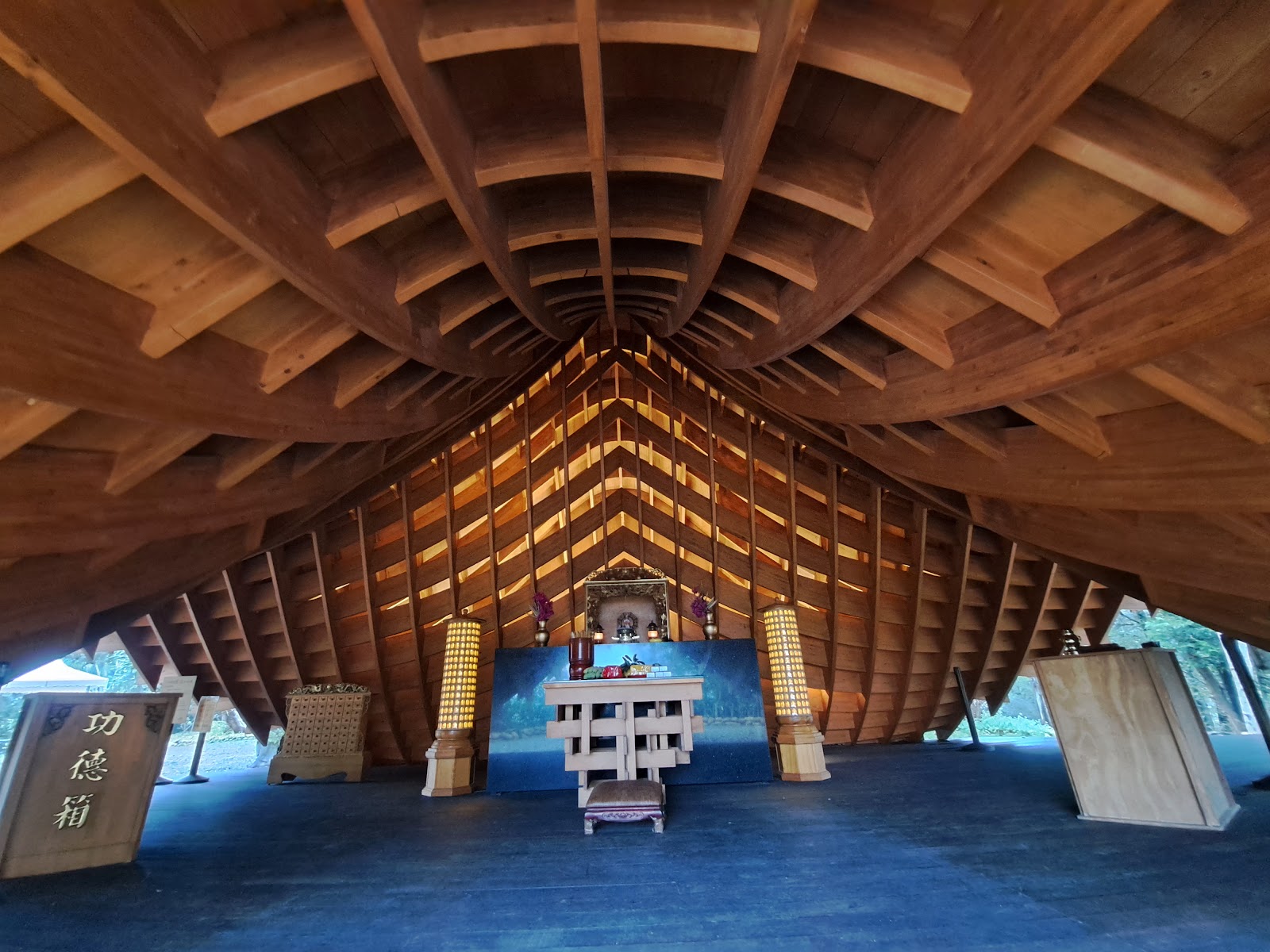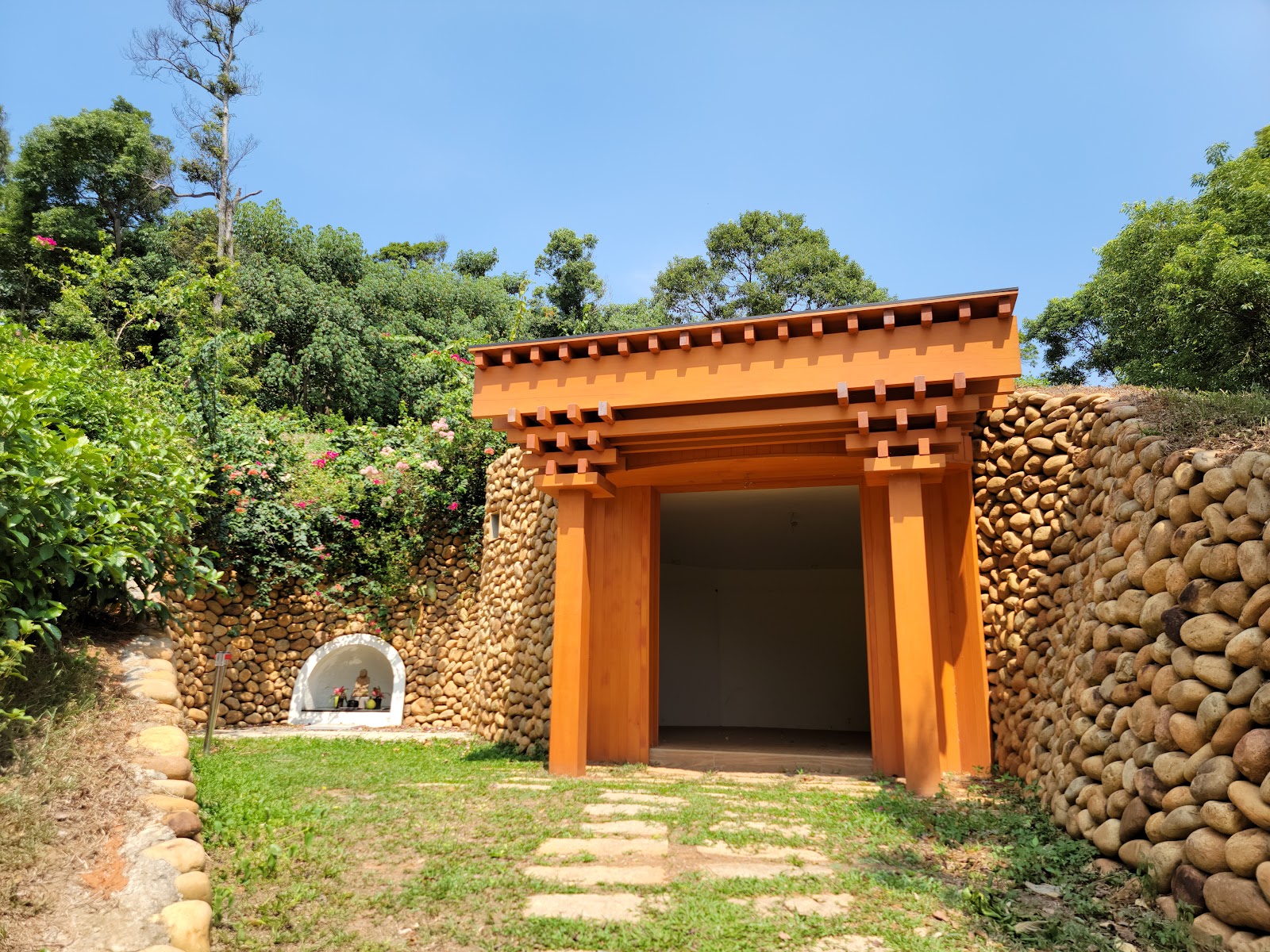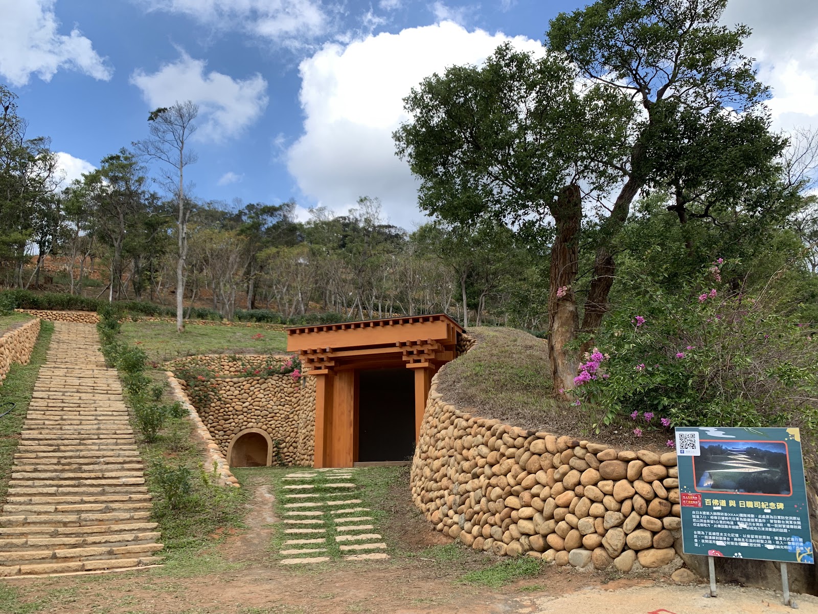 再往上走,連續幾個彎種滿了香花,家人說,哈蜜瓜的香味,啊!是含笑花香甜的味,春天正盛開,桂花和樹蘭穿插其間。走完香花道,眼前供著一尊莊嚴的藍色藥師佛,大家歡喜地禮佛發願,園主真是用心,這裡是美麗的花園,也是莊嚴的道場。