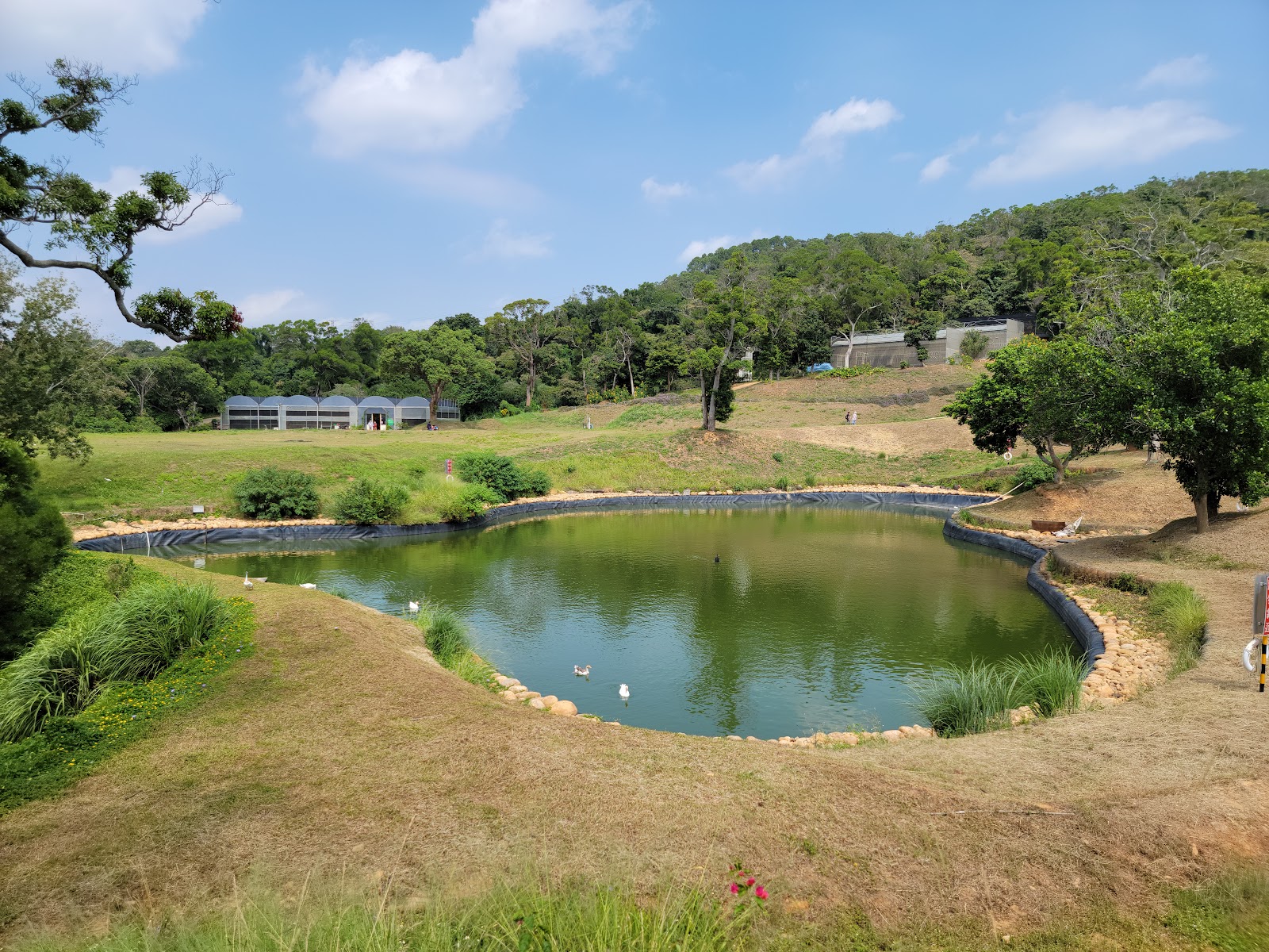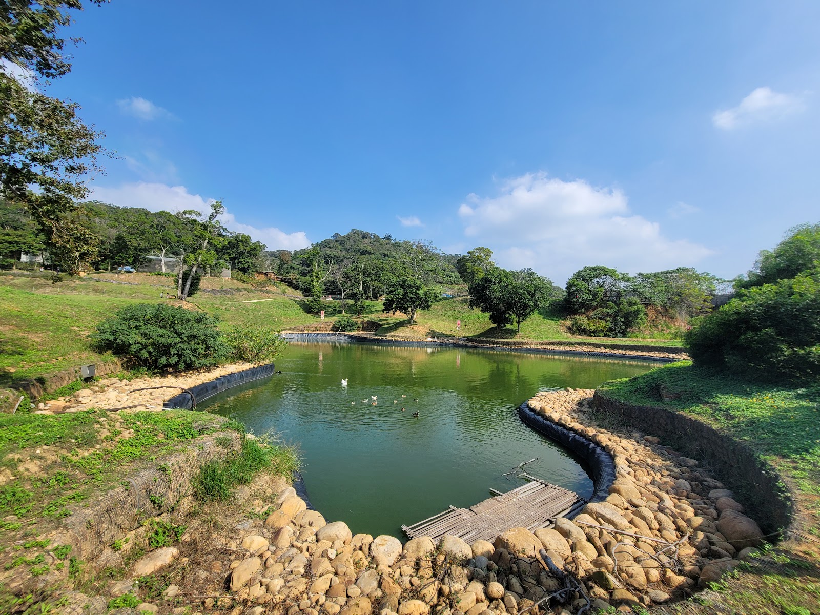 位置於新竹縣新埔鎮,交通便捷,附近商家少許,生活機能好,停車便利,環境清爽,人潮眾多,設備,設施齊全,軟,硬體完善,風景秀麗,空氣新鮮,服務客氣,今天一家老小五口來踏青,老的小的都玩得很開心。走完一圈園區,一天的運動量很充足,停好車先去餵羊,園區準備了很多新鮮的草,餵的時候每隻羊都搶著吃草,工作人員說餵再多都不夠,因為吃草易消化,有好幾種不同的羊都很好看,走到池塘邊,看到很多漂亮的鴨子和錦鯉,再往上走,有美麗的孔雀漫步園區,難得能近距離觀賞孔雀,小朋友看著孔雀,公雞,鴨子一起吃飼料,看得好開心,走了一小段山路,地上很多掉落的黃花,查了一下,是重瓣彎子木的花,又稱黃金樹牡丹真好看沒見過呢!再往上走,連續幾個彎種滿了香花,家人說哈蜜瓜的香味,啊!是含笑花香甜的味,春天正盛開,桂花和樹蘭穿插其間,走完香花道,眼前供著一尊莊嚴的藍色藥師佛,大家歡喜地禮佛發願,園主真是用心,這裡是美麗的花園,也是莊嚴的道場,