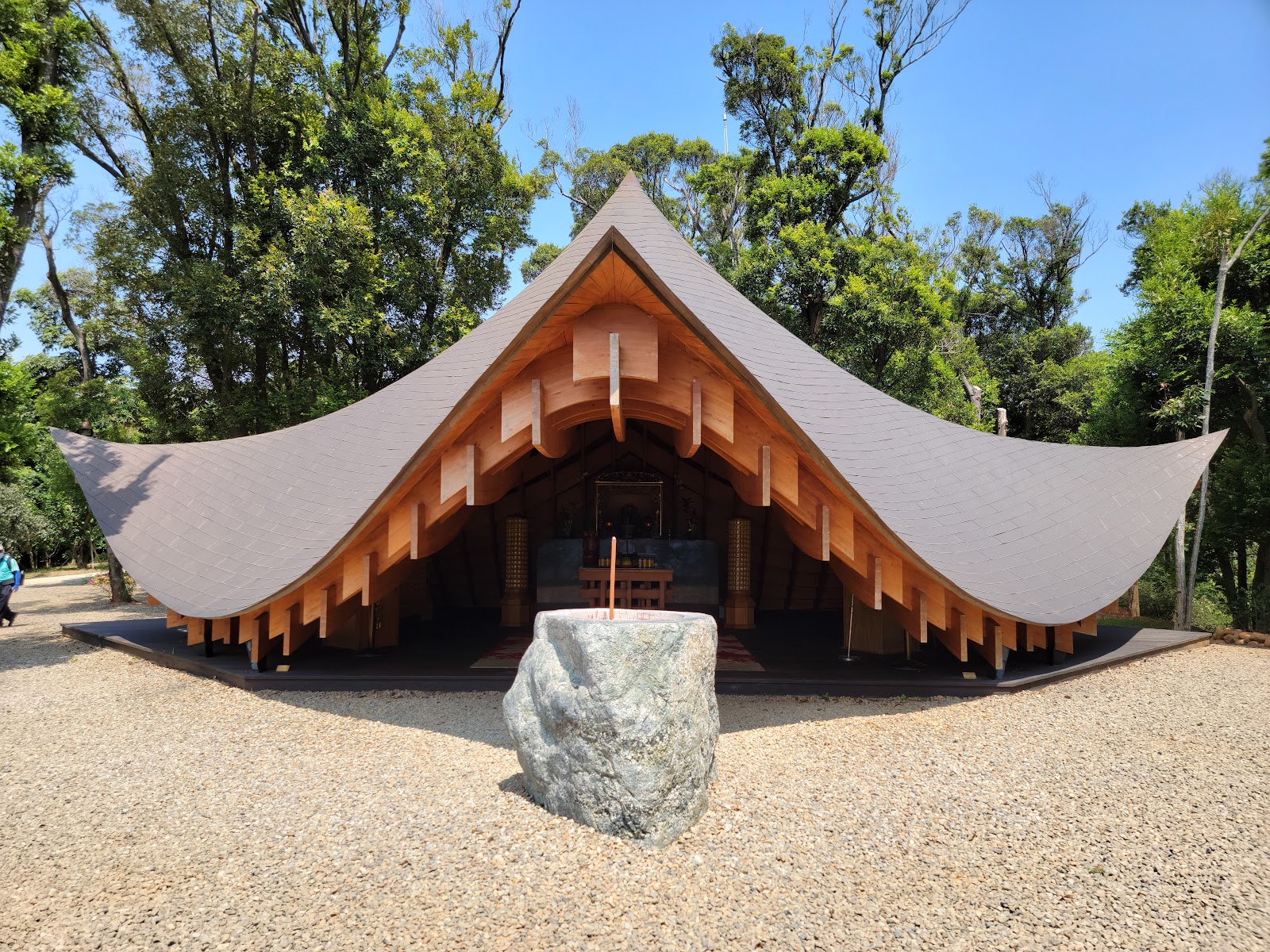 繼續往前走,經過種滿睡蓮的池子,池裡還養了很多漂亮的魚。接著欣賞了日本建築大師設計的精美建築雲水觀,真是好看。