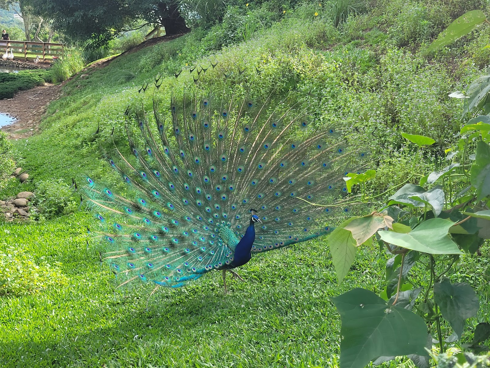 想要運動一下的、穿上運動鞋、走走停停看看花看看孔雀、帶點魚飼料餵餵魚、真的很不錯喔!