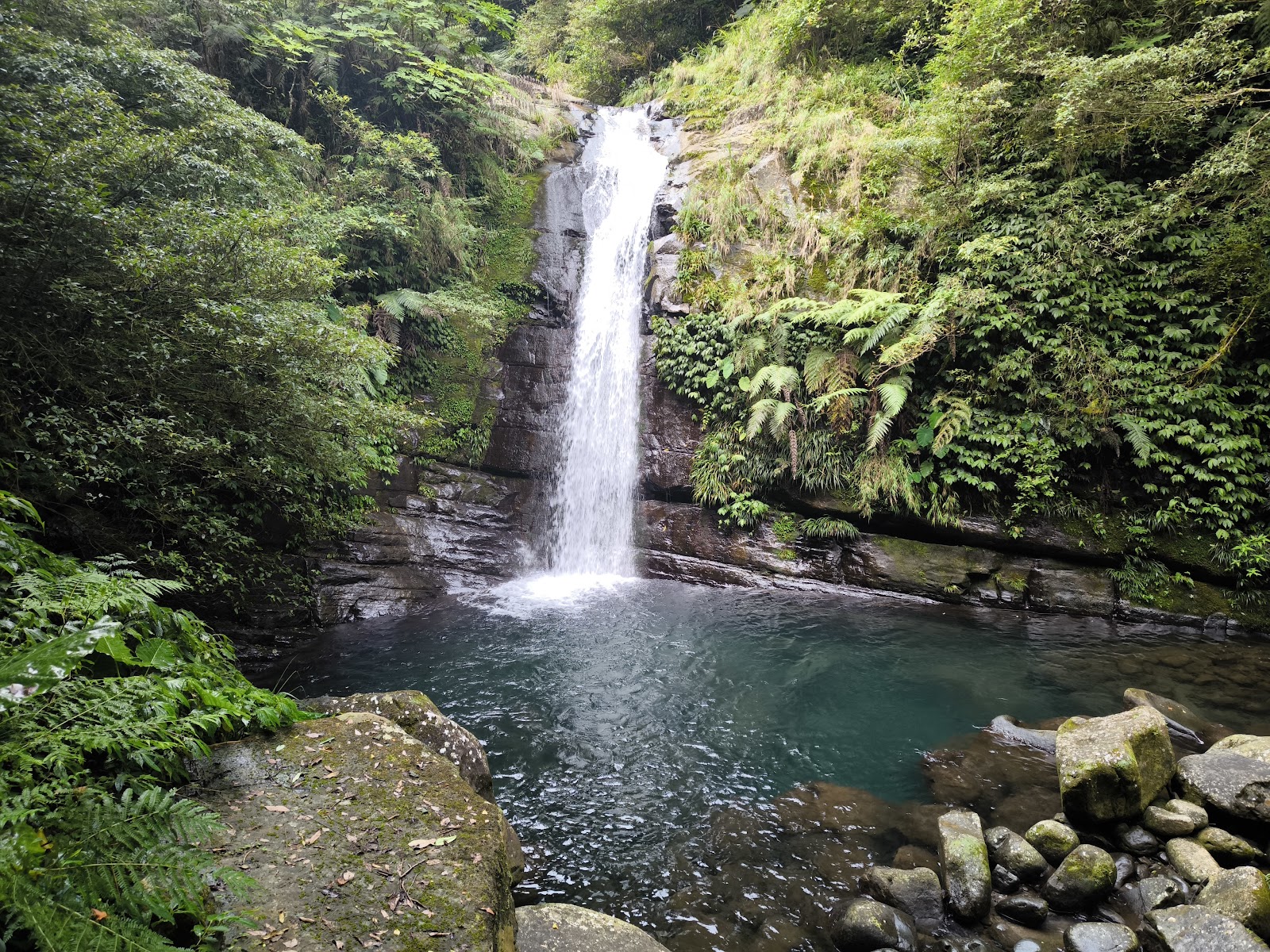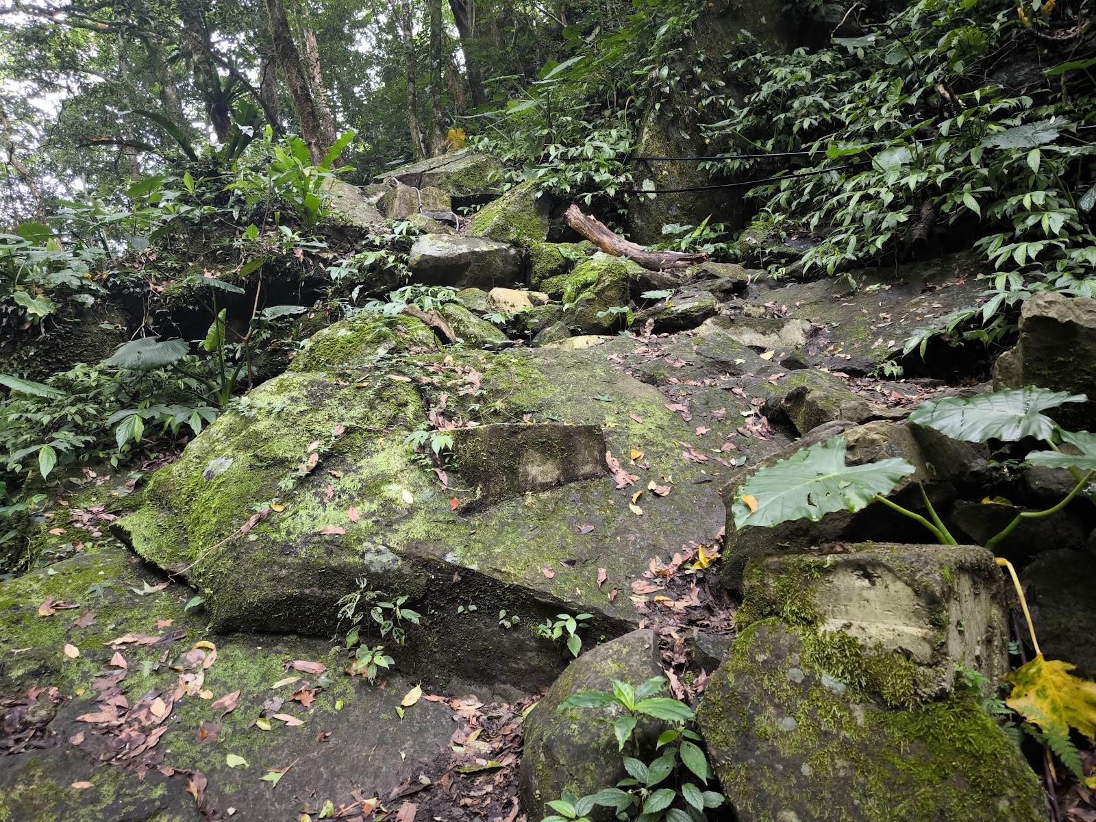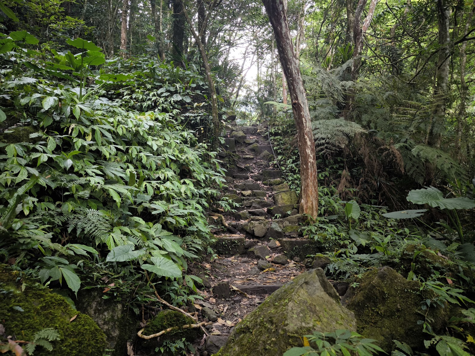 涼爽好走,只有前500公尺比較斜,後面就平緩了,可惜到最後500公尺前有一灘積水,我們過不去,無緣瀑布
