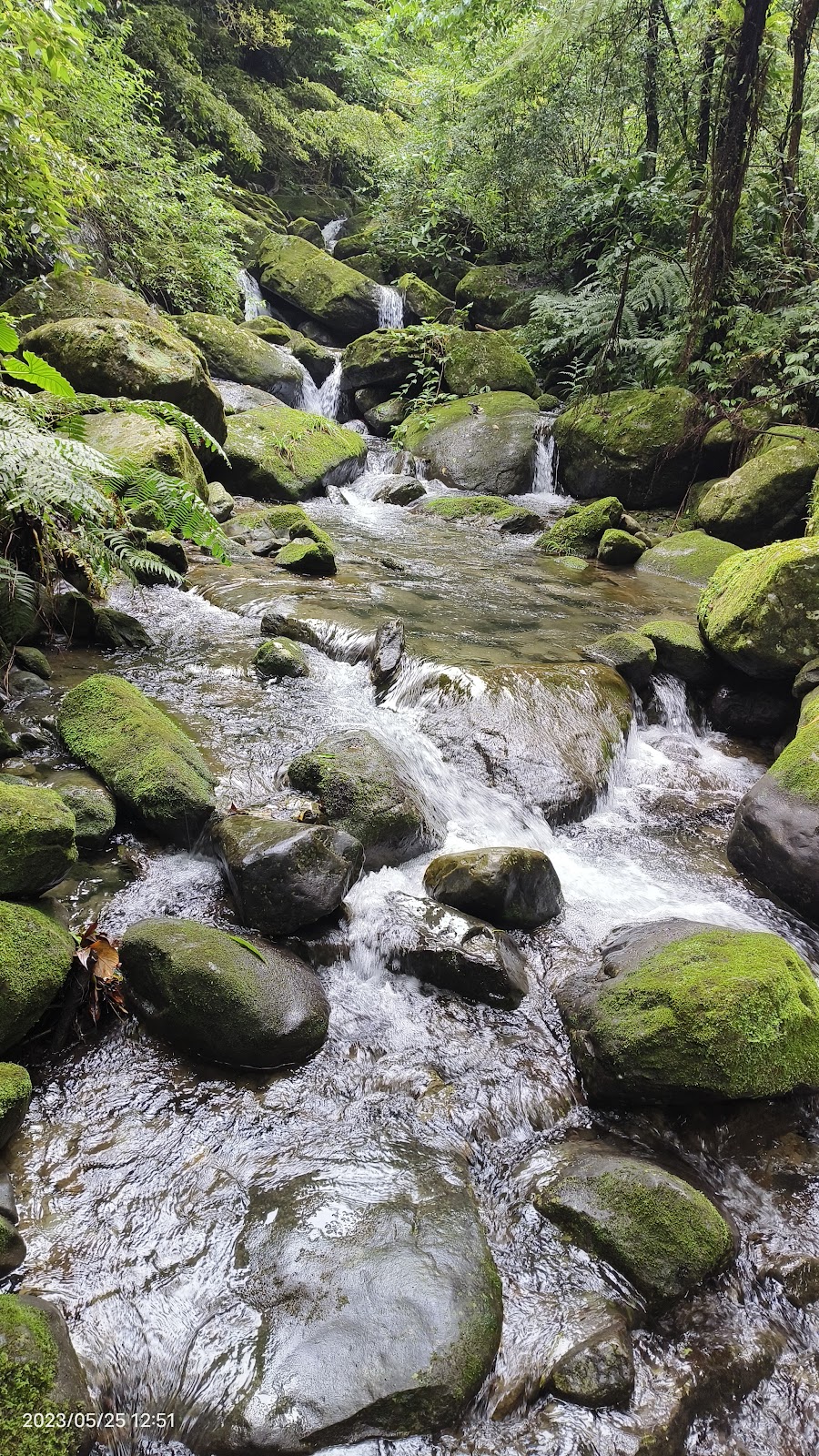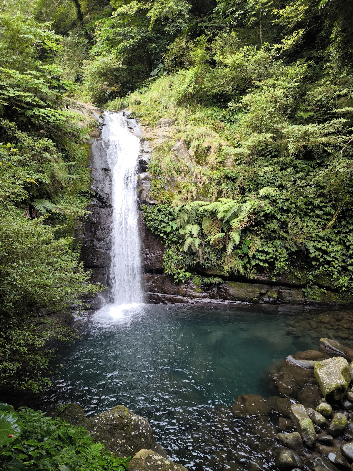 走過了山,爬過了嶺,瀑布入口處平緩好走,臨近瀑布是原始崎嶇陡峭坡度,克服難度,映入眼簾的是高處渲洩而下瀑布是如此散發的浪漫氛圍,清新的微風輕輕摹挲妳的臉龐。沿途蓊鬱蒼翠的林蔭與溪底潺潺流水聲猶如一曲悅耳的音樂曲調,蝴蝶飛舞,蟲鳴鳥叫伴奏,盡享森林芬多精的洗禮何其有幸。
