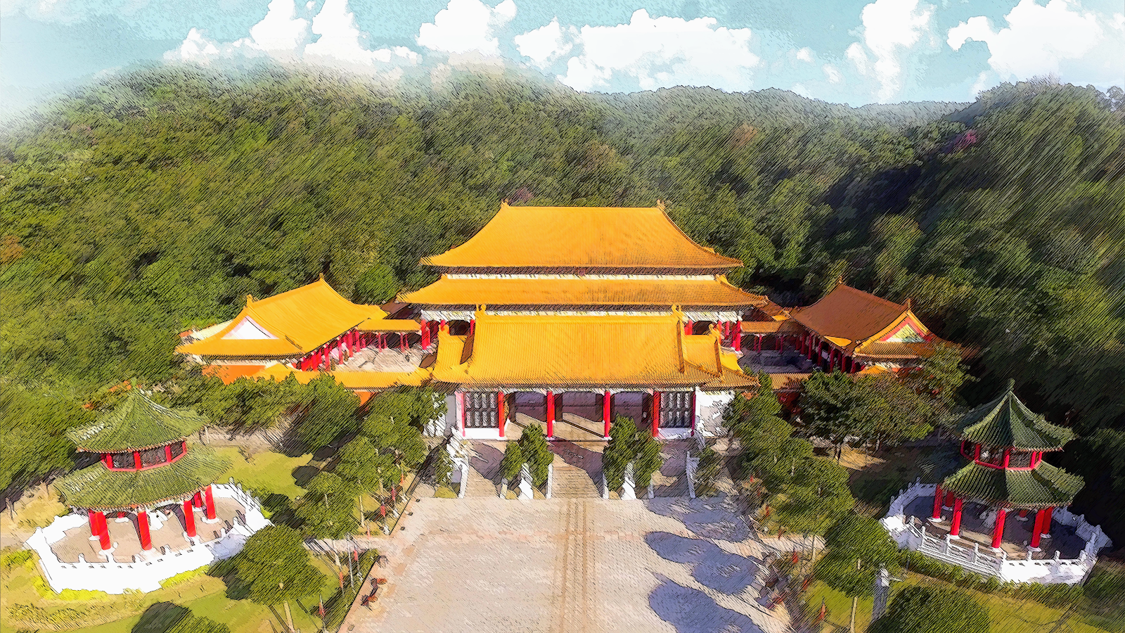 腹地廣,建築群宏偉,仿北方宮殿式建築,氛圍莊嚴肅穆