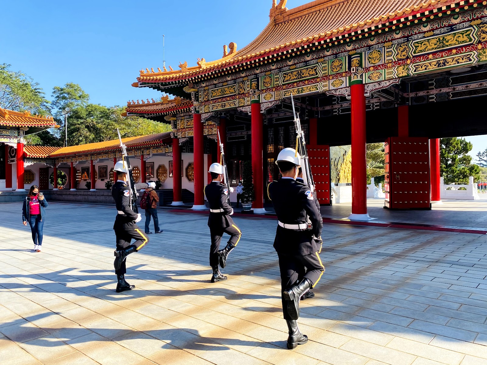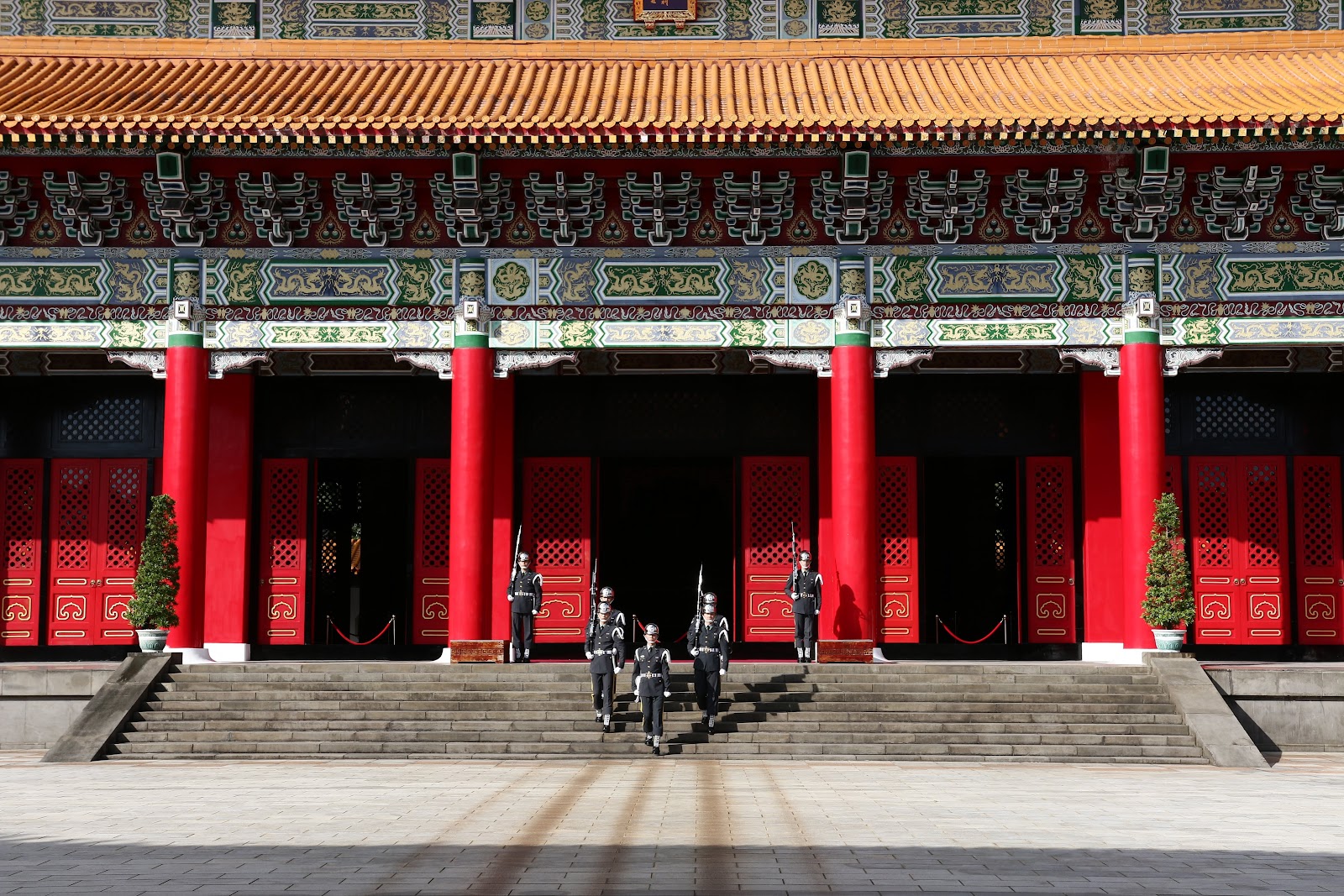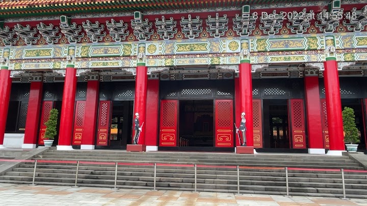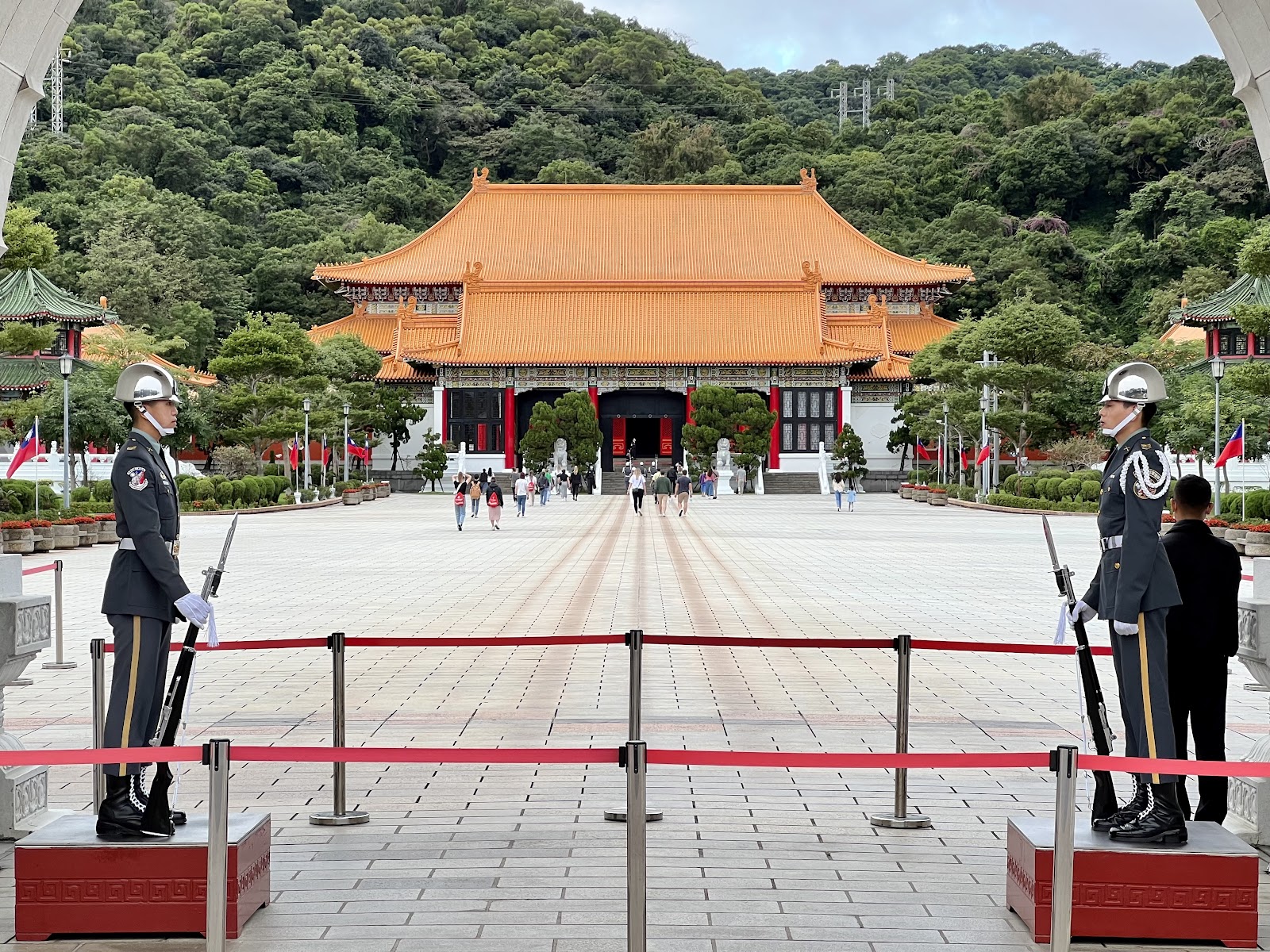 ⛩圓山【忠烈祠】鄰近「圓山大飯店」,祠内由中華民國三軍儀隊擔任禮兵駐守,儀隊交接儀式每日上午09:00至下午5:00的整點執行;其中下午5:00的儀式提早在下午4:40開始,操槍動作大約20分鐘。