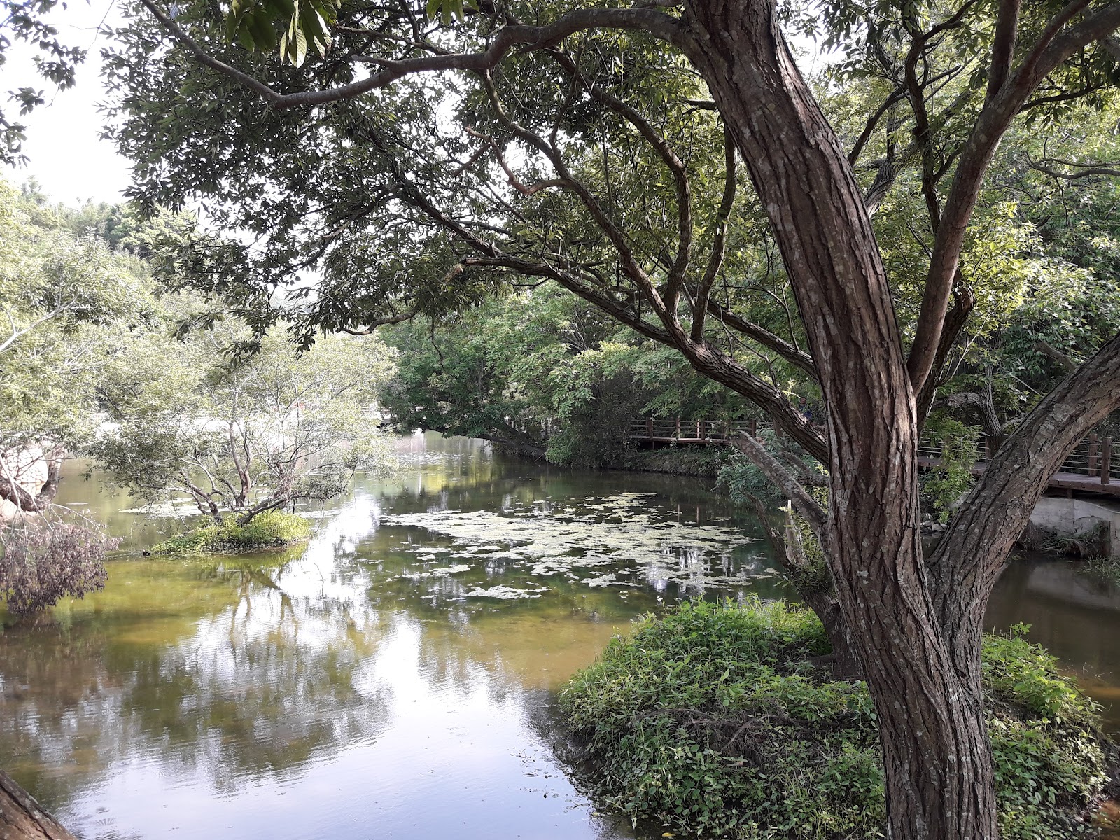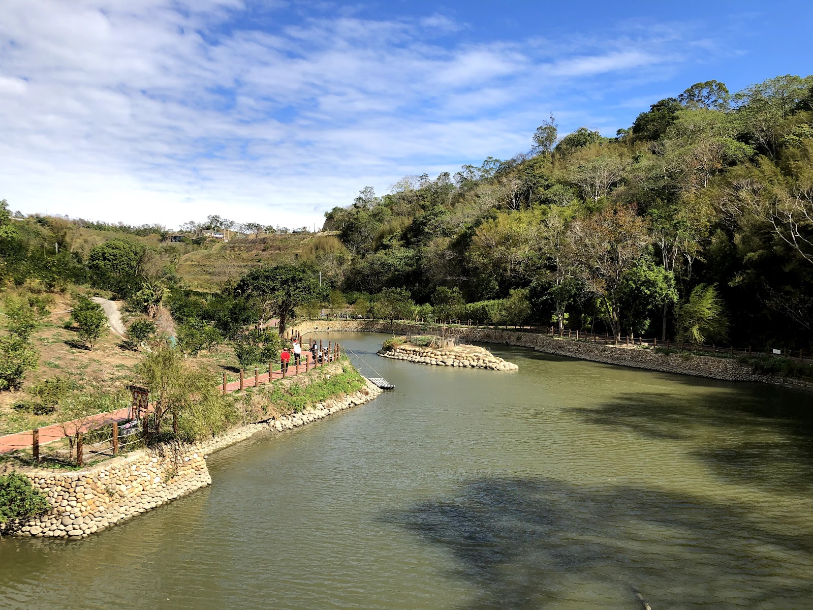 只所以知道這個大埤塘沒什麼原因……純粹是在Google map 上發現的,主要是因為這裡有一個古色古香的拱橋,所以讓我好奇得想過來瞧瞧。步道路線環繞這個大埤塘,步行一周若是不停下來休息欣賞風景,過程大概十分鐘就可以走完。拱橋在這裡的作用真的很重要,本來是平凡的風景,加上了拱橋就成了“小西湖”,一整個詩情畫意不少。當我快走完這條步道時,遇到了一位老農夫,他看我的眼神有些奇怪,大概是覺得我是什麼竊賊之類的,但我也很能理解,因為會在太陽即將下山之時獨自一人來逛這條步道,確實是有些奇怪。