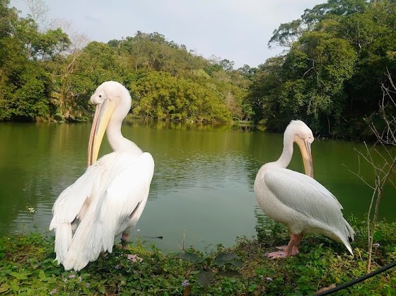 已經來第二次了,每次來都有被小黑蚊叮的心理準備,所以防蚊液跟防曬乳都要備好備齊,一進去小孩就開心到到處奔跑,入口進去有一個大湖,旁邊有一些小動物,湖邊也有兩隻大嘴鳥,小孩們爭相拍照,超可愛😍