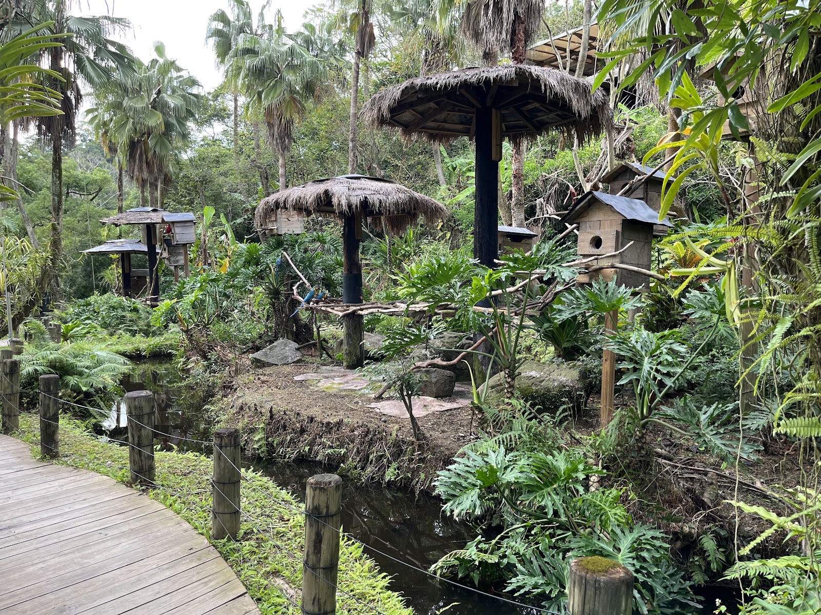 園內的多元生態園也是必去之地,裡面有樹懶、松鼠猴,以及各種爬蟲類和鸚鵡,這些動物近距離接觸的感覺超級酷!尤其是那些沒有關起來的鳥類,牠們自由地在你身邊飛來飛去,彷彿置身於大自然之中。熱帶雨林區的天空步道建在灌木叢中,帶來了一種冒險的感覺,鳥園內的色彩繽紛的鳥類更是為這趟旅程增添了不少色彩。