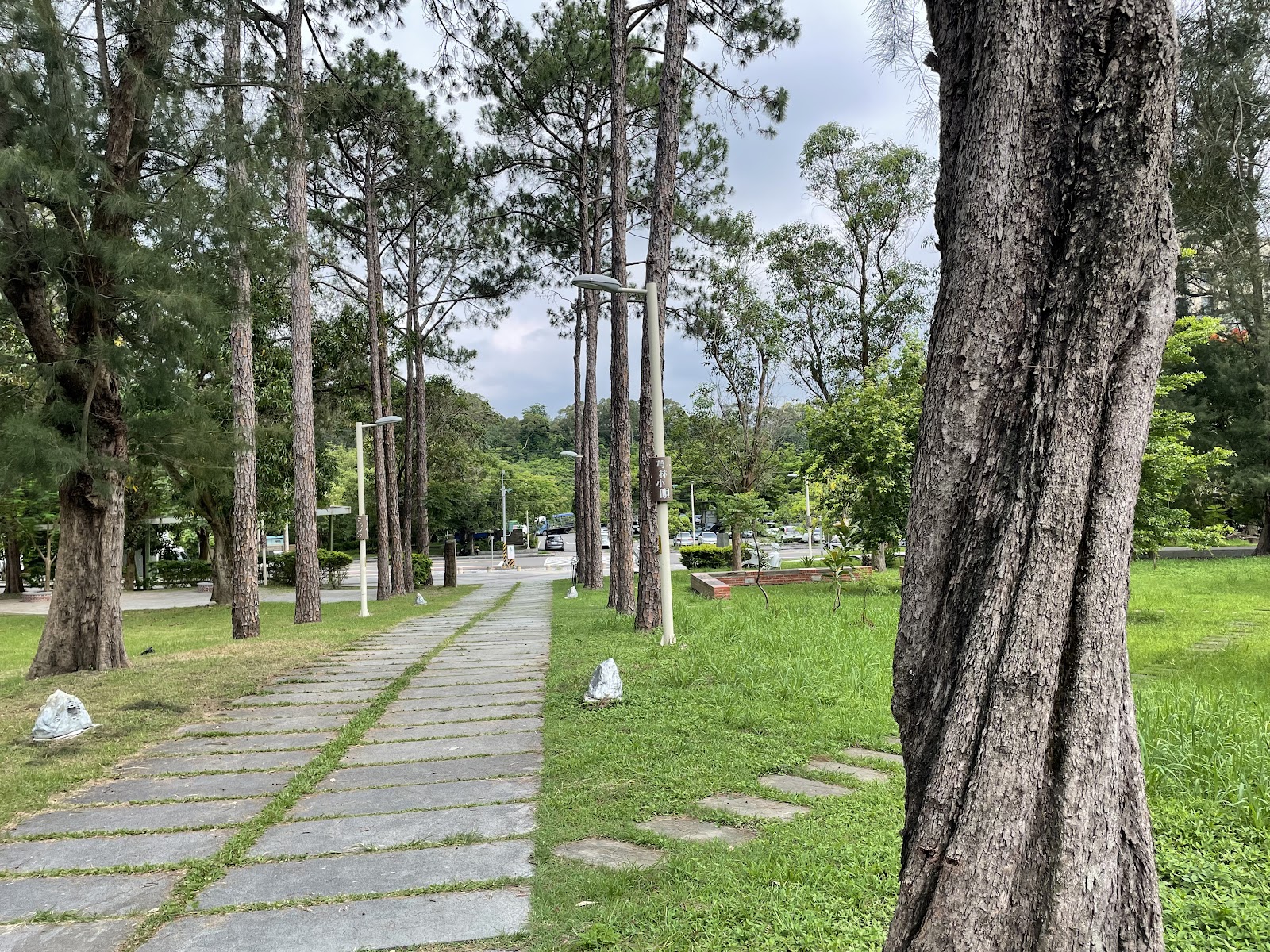 公園裡有樹立鄧先生很多有名的歌曲名稱桿子 大約十個左右,地上有幾處有播音設備的東西,猜想可能之前應該有播放音樂的功能,現在就感覺已經久年未好好維護,機器都東倒西歪了!好可惜! 當然也沒有耳福聽到任何音樂了!