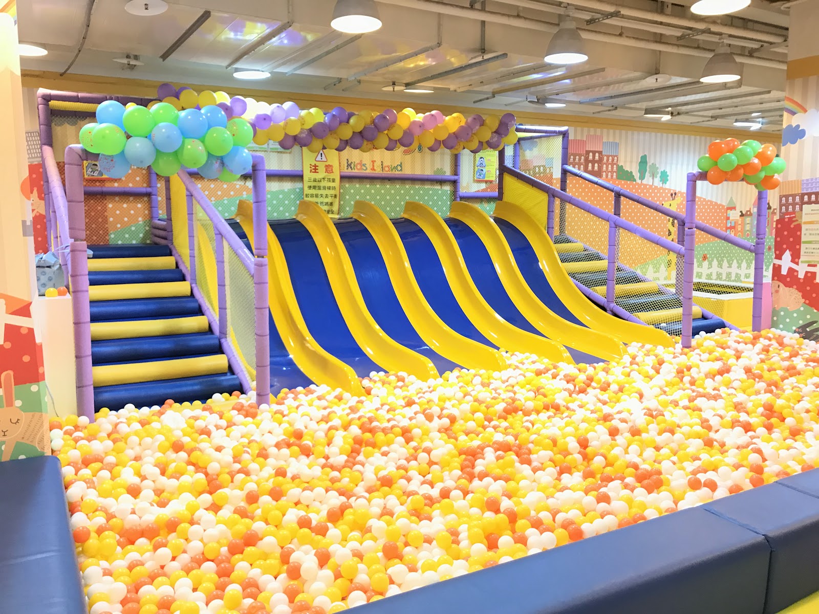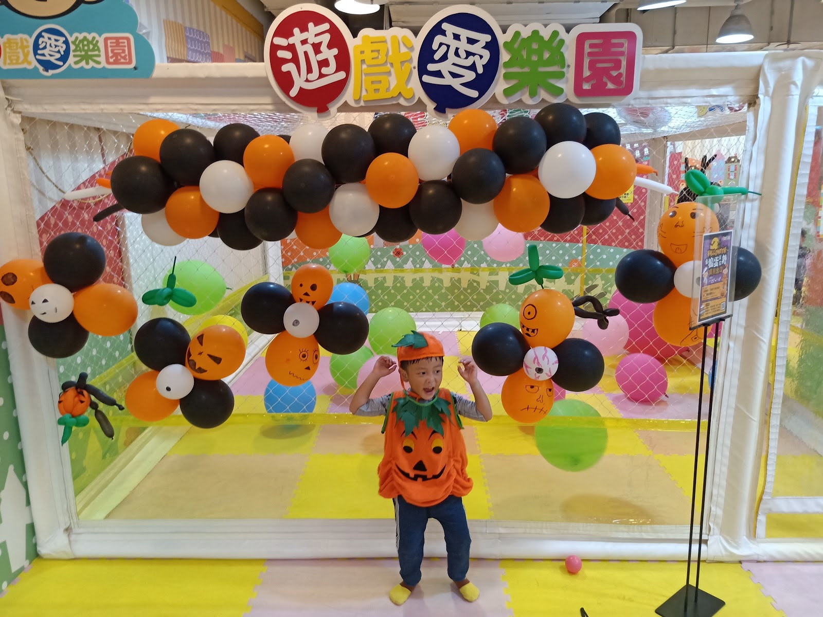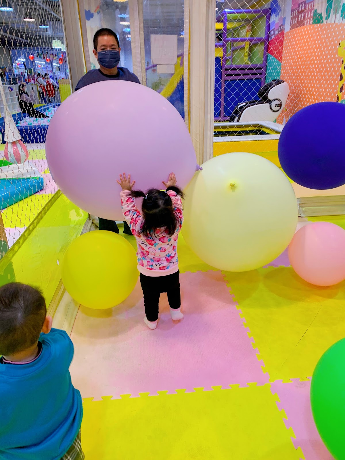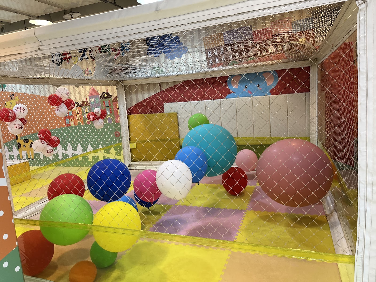 其中有氣球飄著的空間,和彈跳床,小孩很喜歡