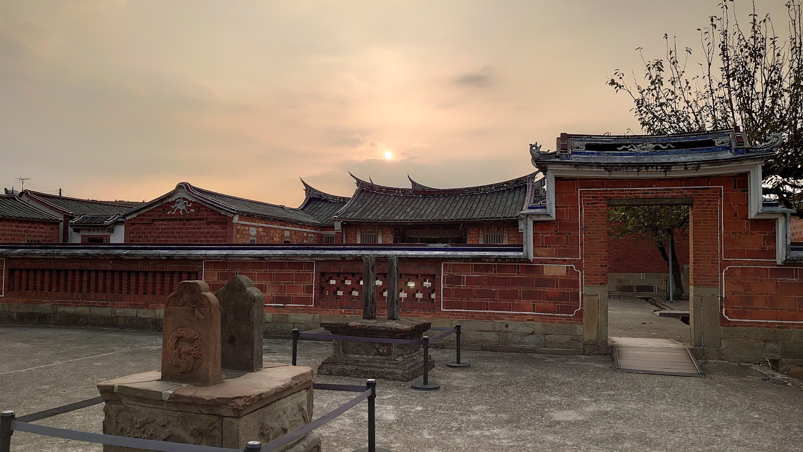 到達時間已過5點所以無法進入參觀,但外面大埕周遭閩南建物與土角厝(有潺潺流水小溪圍繞)就很有看頭了,加上綠油油稻田,配上金黃色落日餘暉與彩霞,久違最美天際線!獨享整個美景(没有其他觀光客),不虛此行!