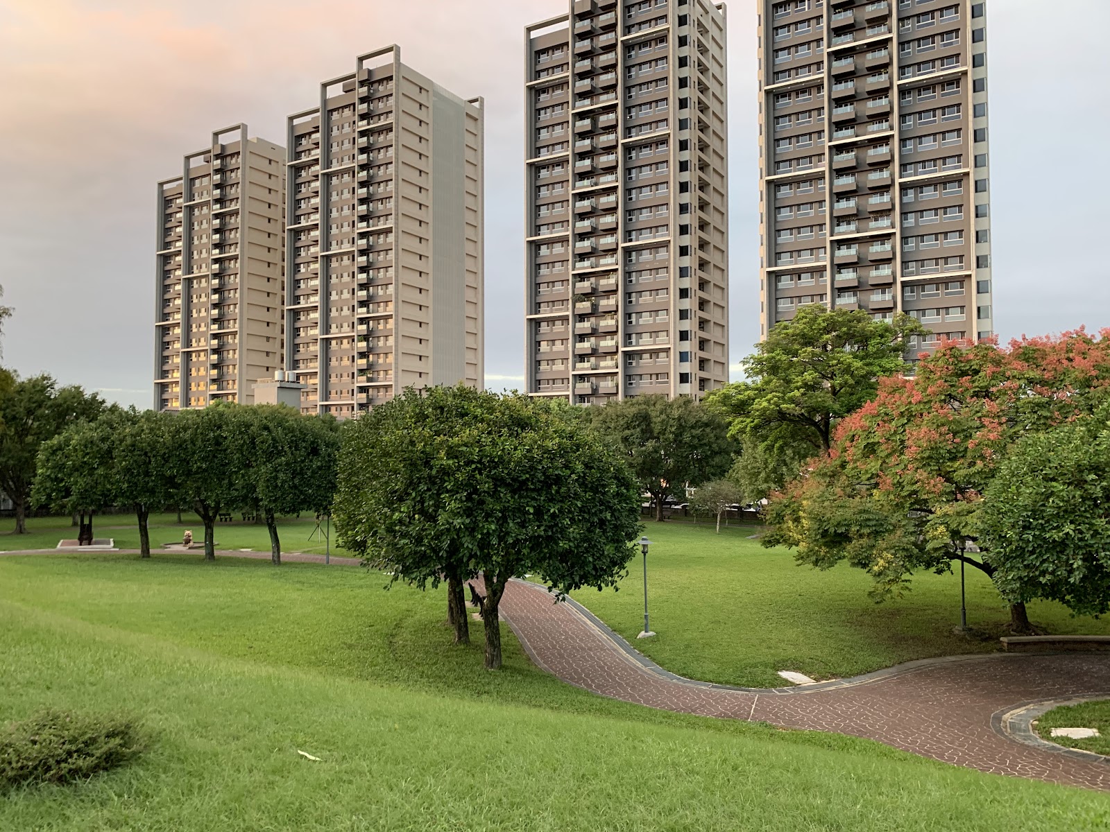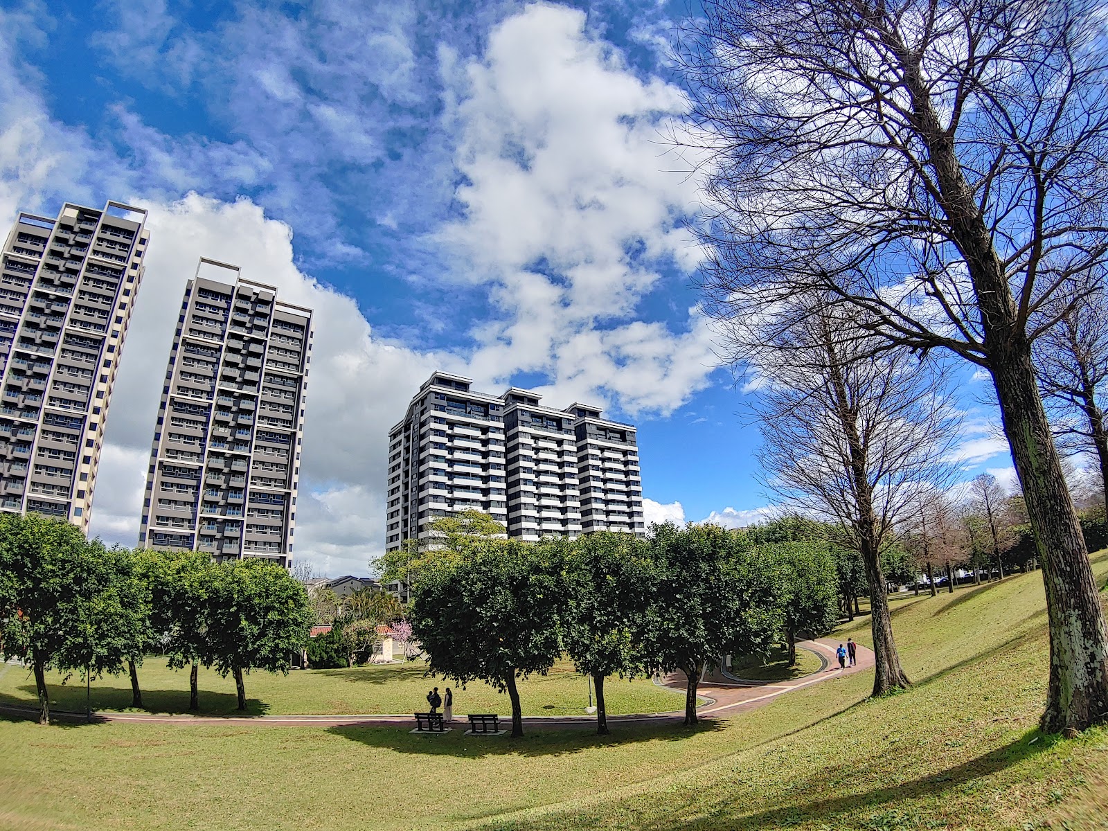 樹蔭很多,草皮空間夠多,還有小孩遊憩區、籃球球場。