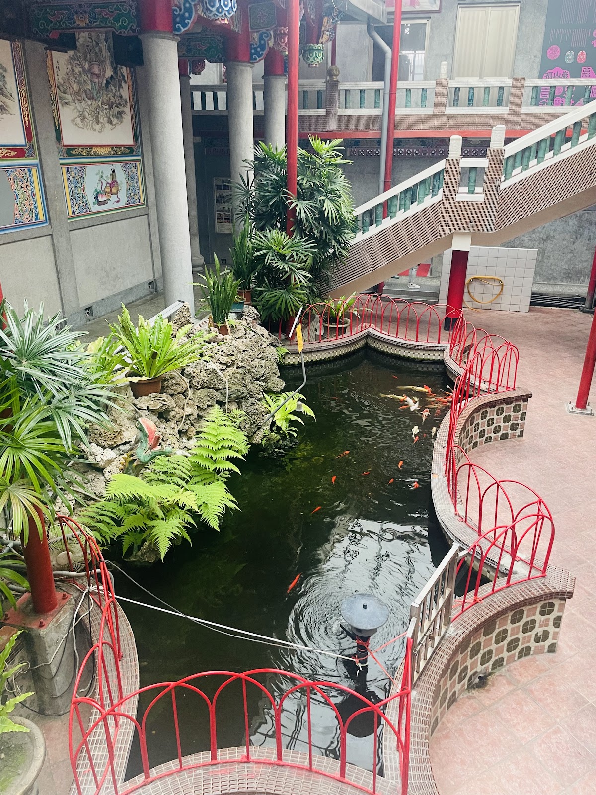 百年建築風水寶地活水池錦鯉,