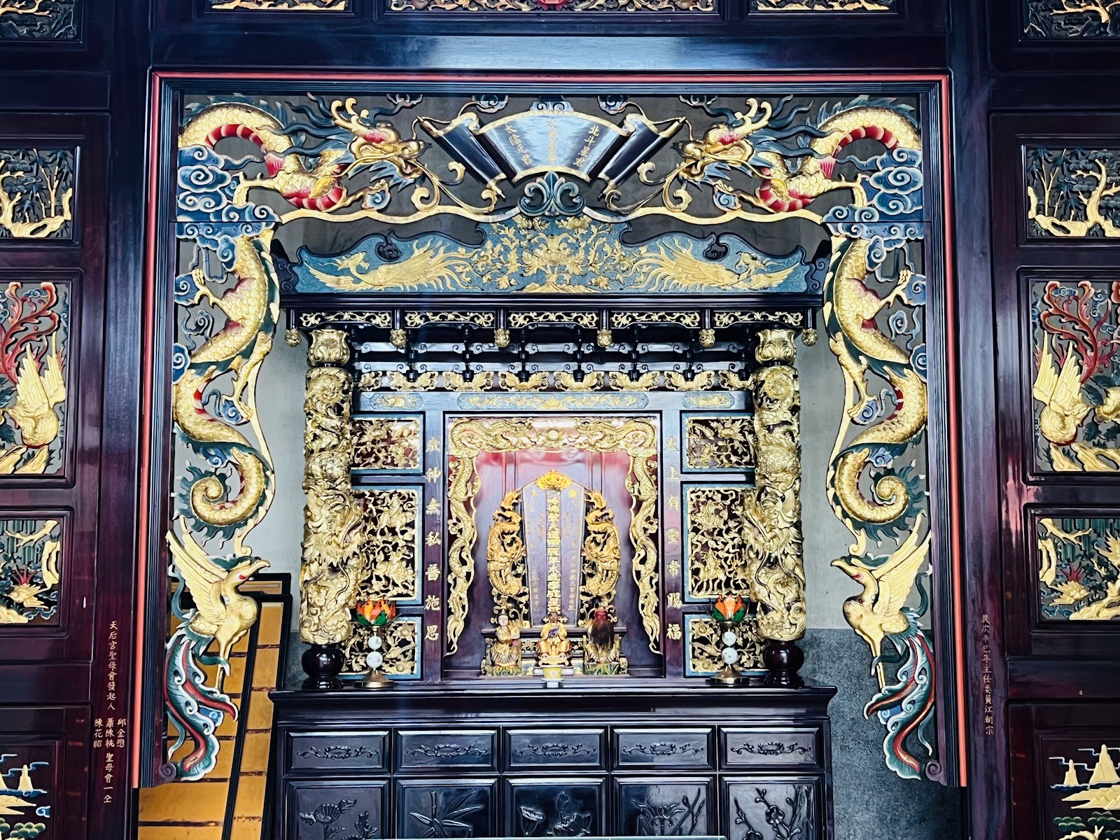 廟宇採三殿式設計,屋頂假四垂、龍柱裝飾精緻,細節處展現匠心。