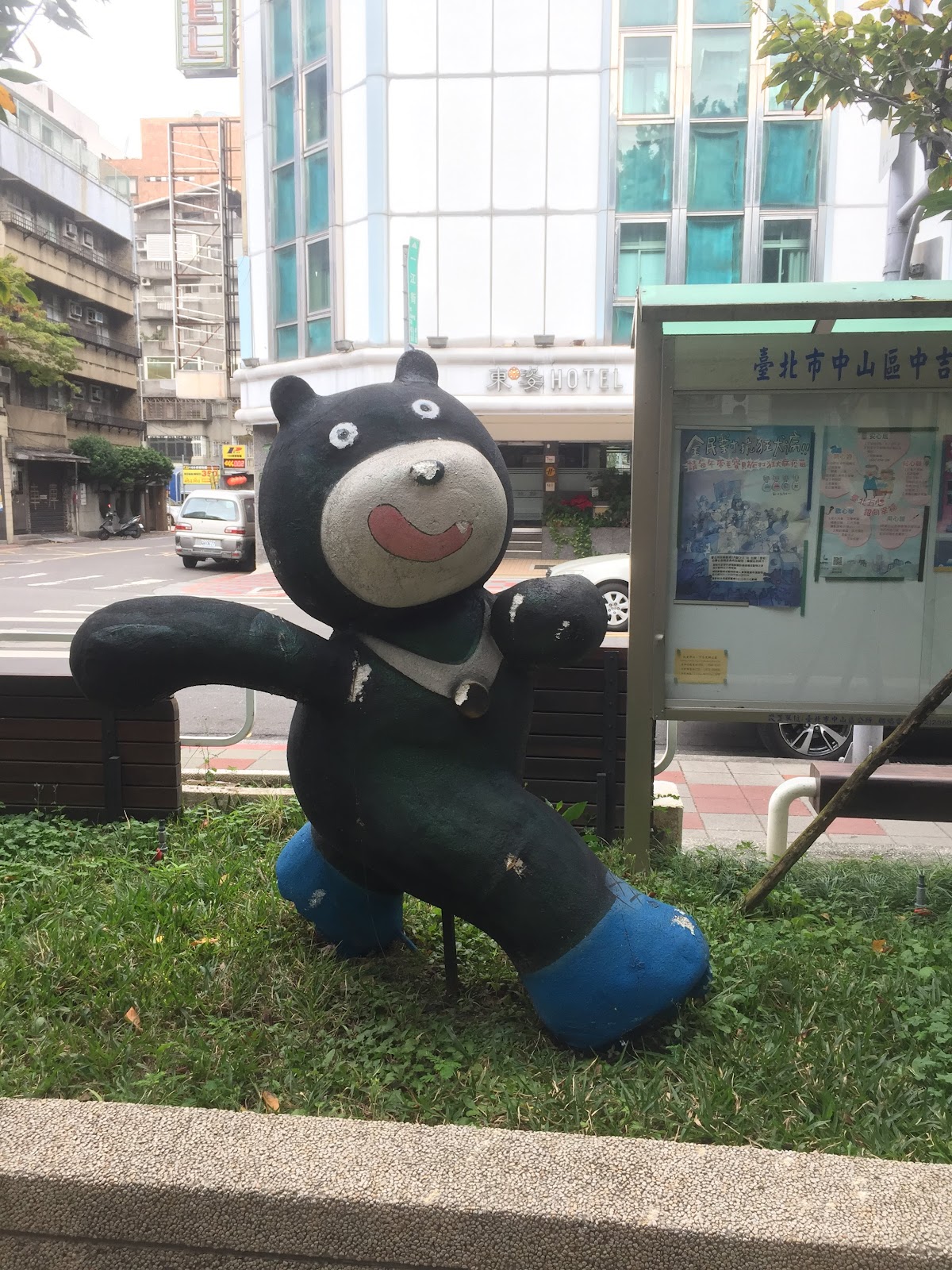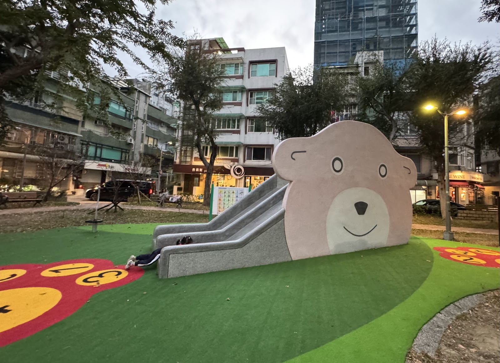 ③公園雖不大,卻有一「熊熊」石製滑梯,比一般塑膠的稍長一點,小朋友玩的高興.