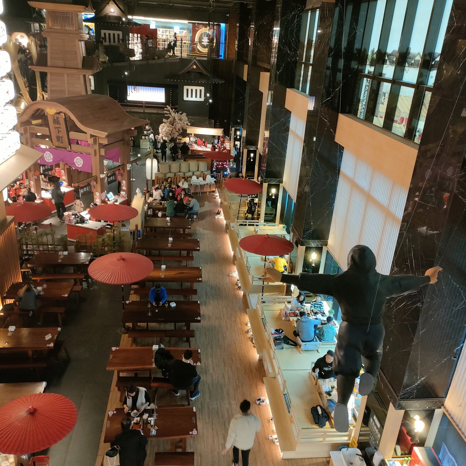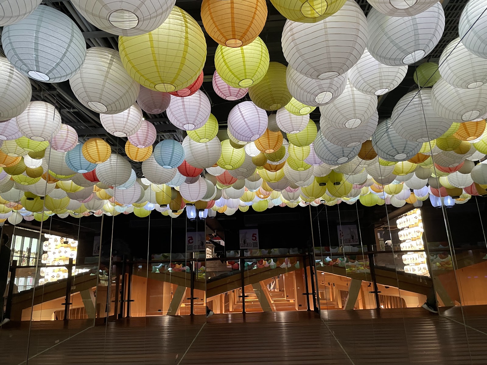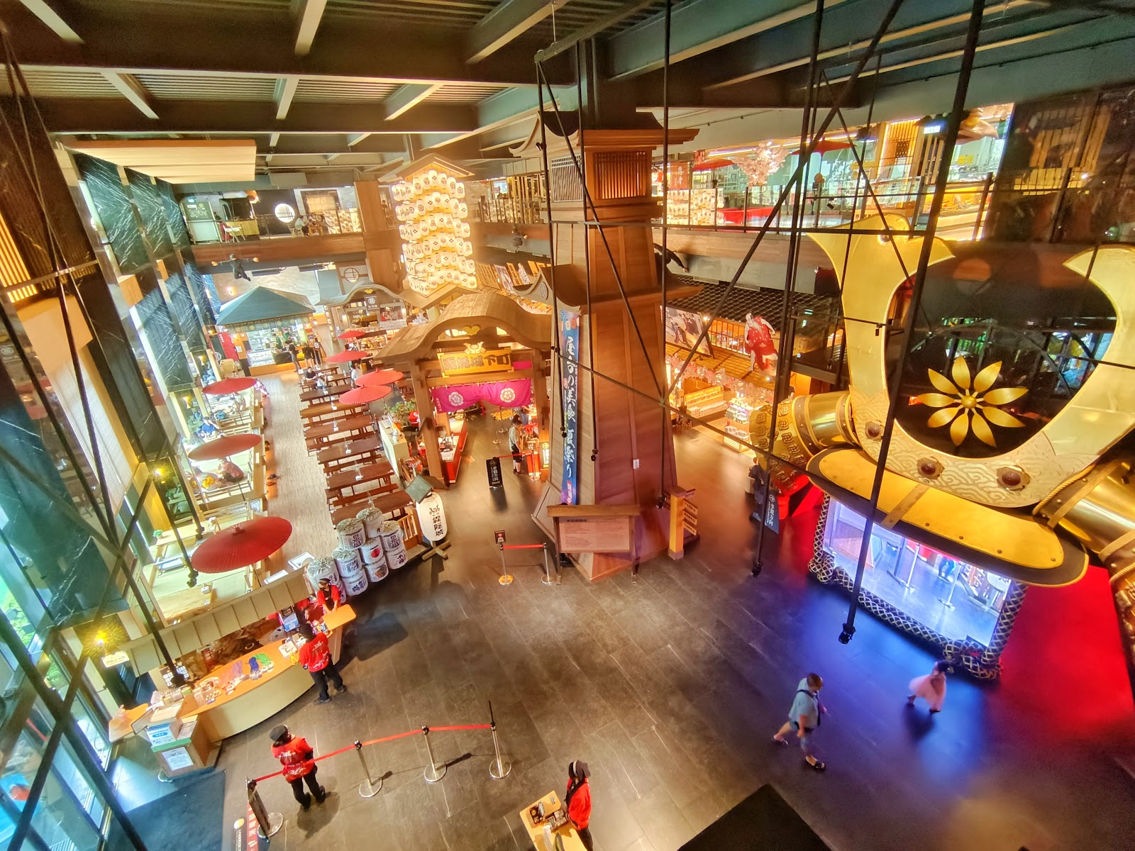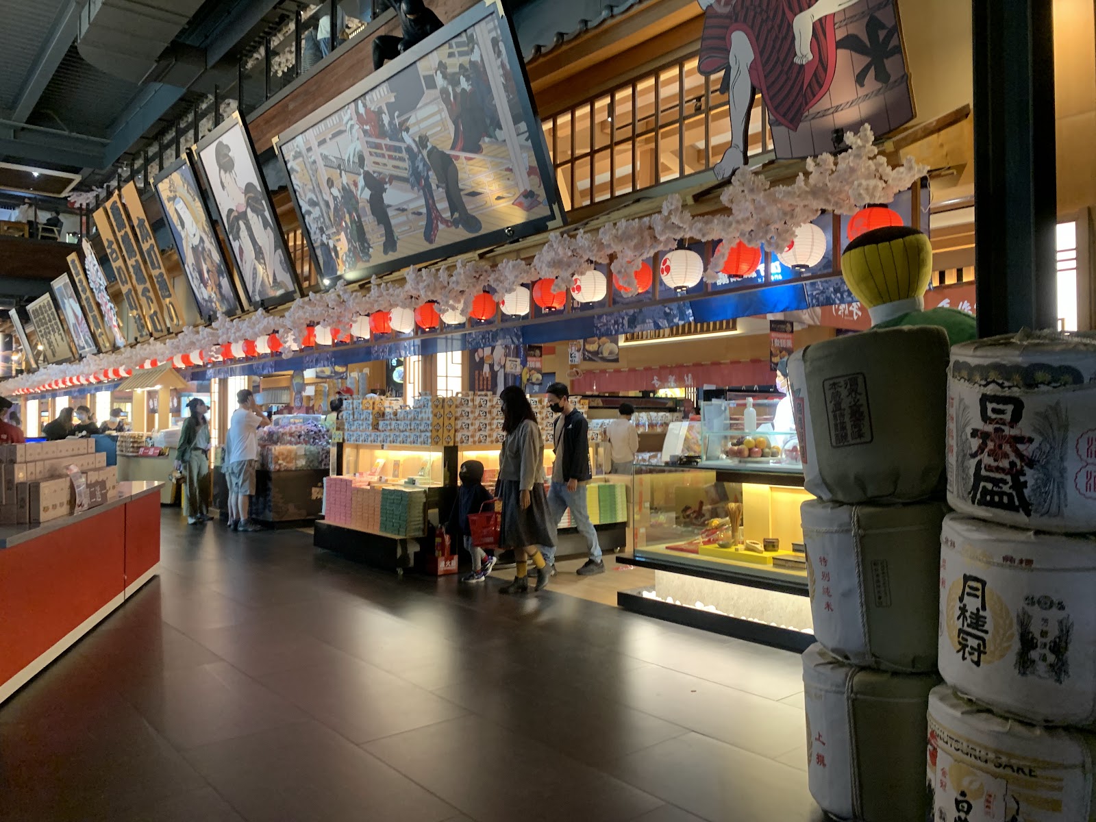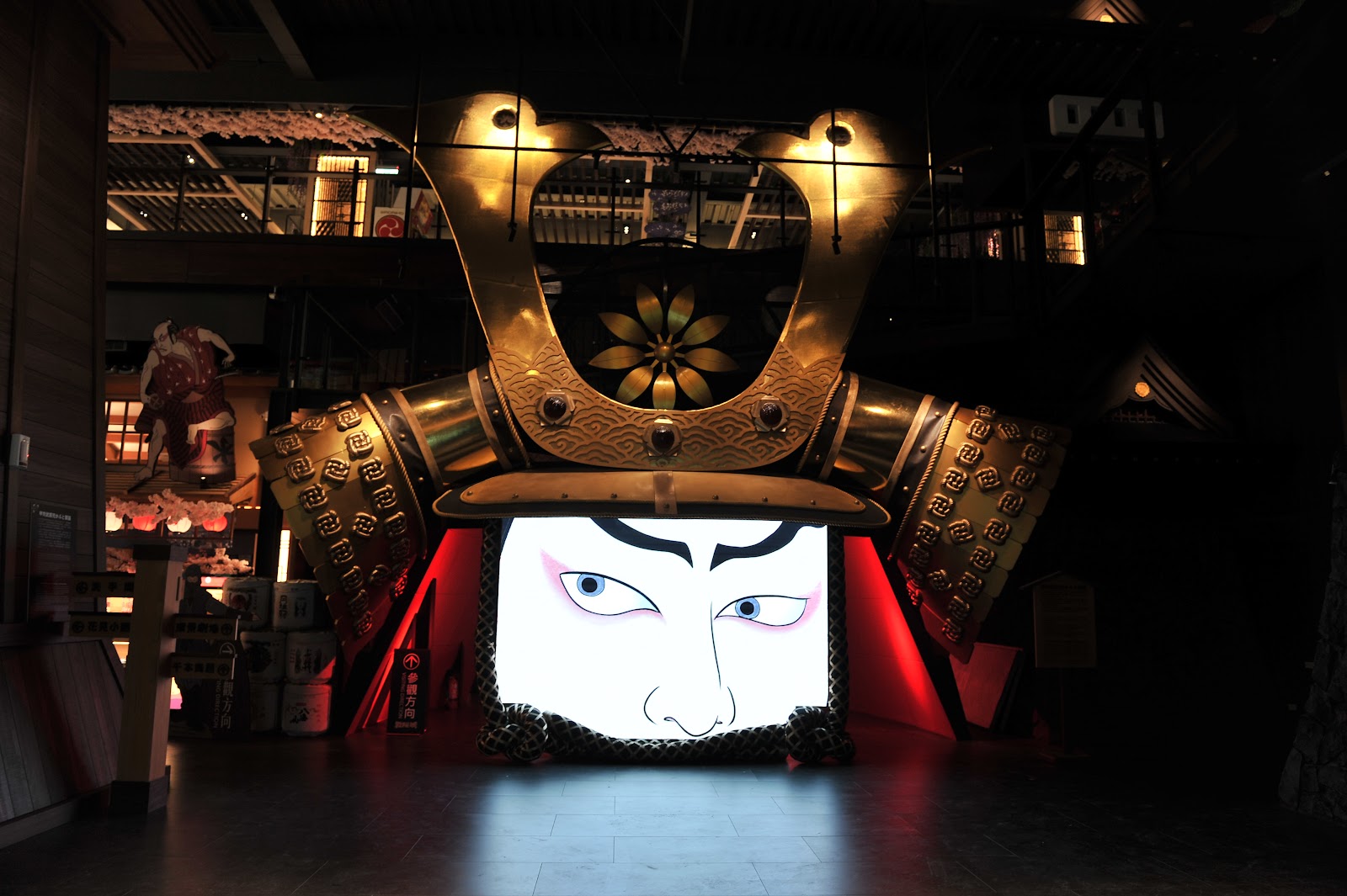 進到城內,一樓是賣場、二樓是工廠、和服體驗和DIY教室;隨處可見可愛的日式造景,大武士、360度環場影音、鳥居、燈籠、飛簷忍者、太鼓、櫻花樹,整體很好拍,尤其適合親子同遊。