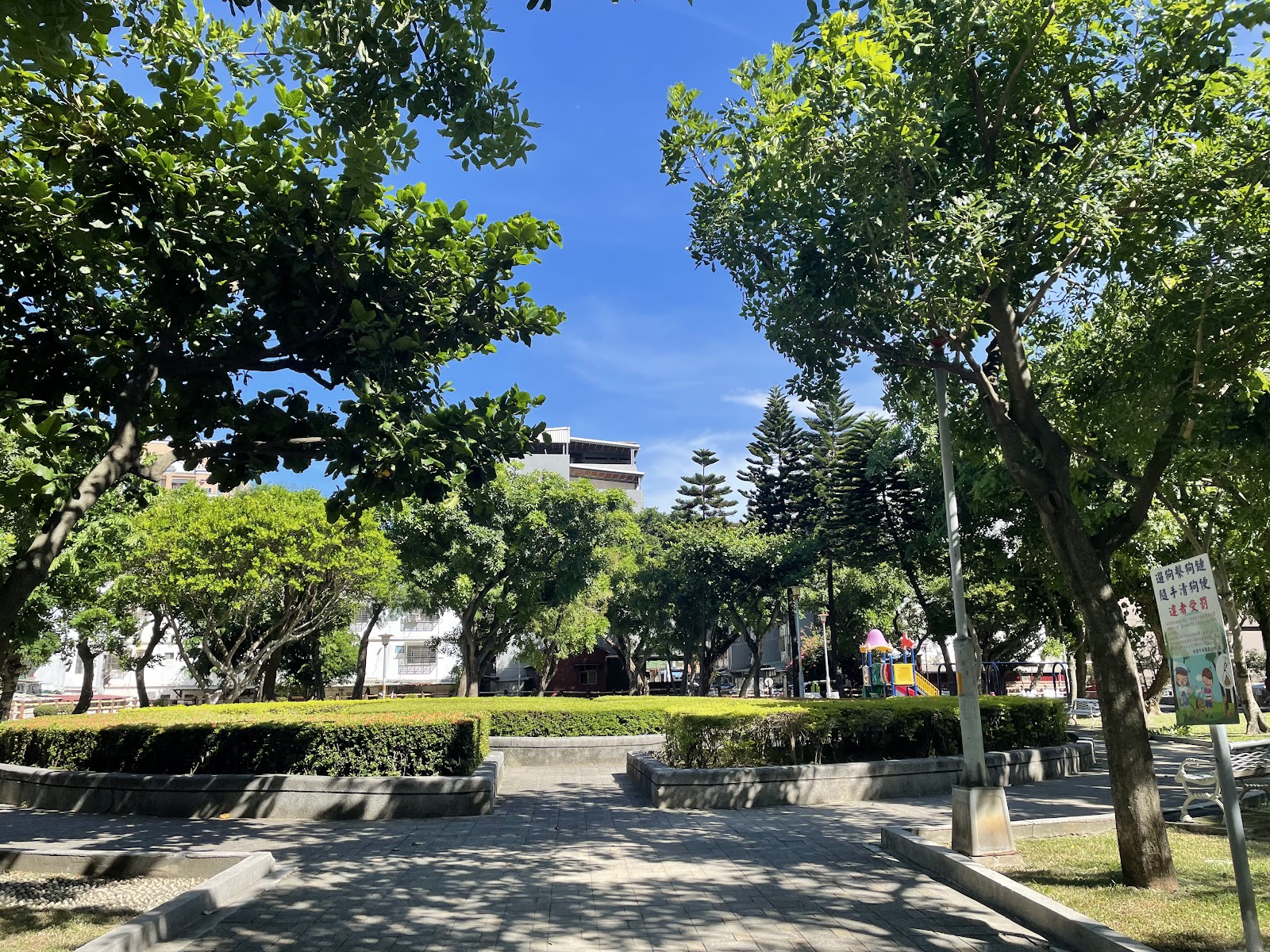 最近把公園樹木修剪過,較明亮,但少了遮陽,還好最近天氣較涼爽。是個好休閒散步運動的場所。