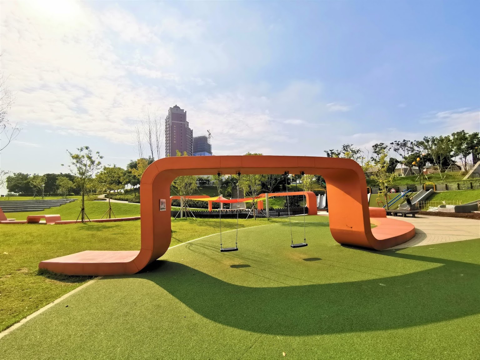 園內設有盪鞦韆、溜滑梯、沙坑等基本遊具,雖不算豐富,但足夠讓小朋友活動筋骨、消耗體力。大片的草皮適合奔跑或鋪野餐墊放鬆聊天,旁邊的樹蔭步道非常加分,適合長輩散步或大人陪伴孩子時稍作遮蔭休息。