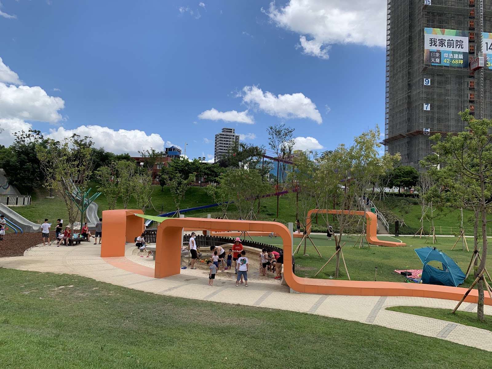 公園非常大,畫面很有故事(後有影片:溜滑梯說明),全部走一圈的話也是很好的運動,兒童區非常多器材能玩,不過附近在起房子,有些吵。